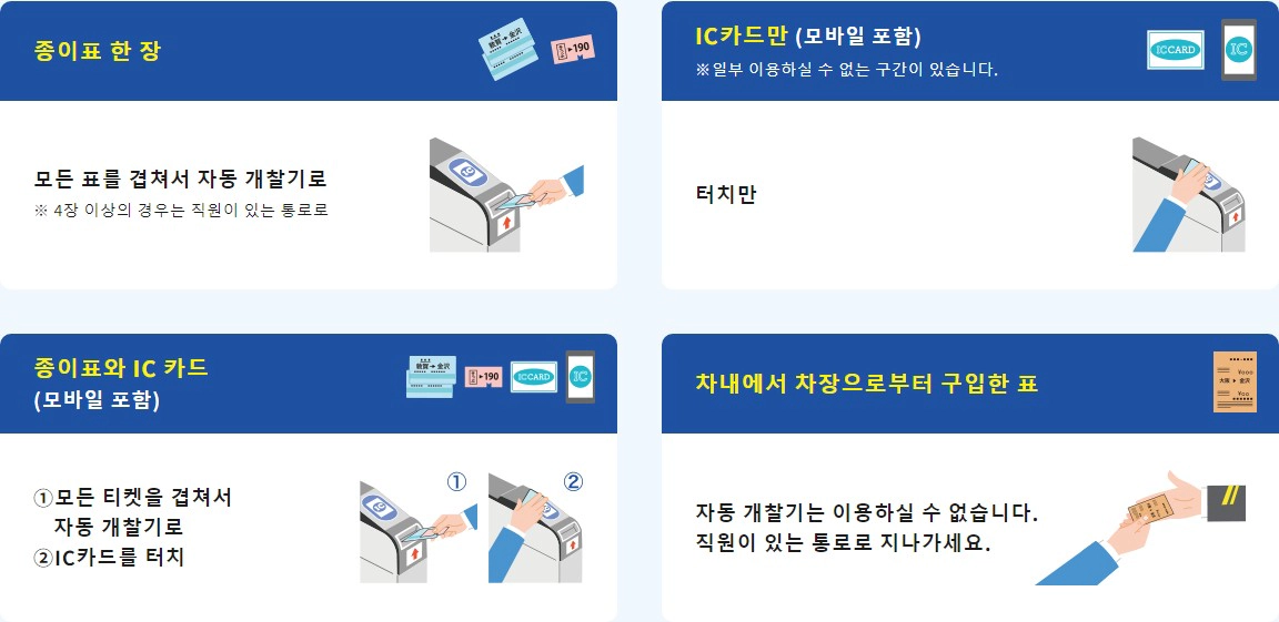 승차권 종류에 따른 개찰구 통과방법