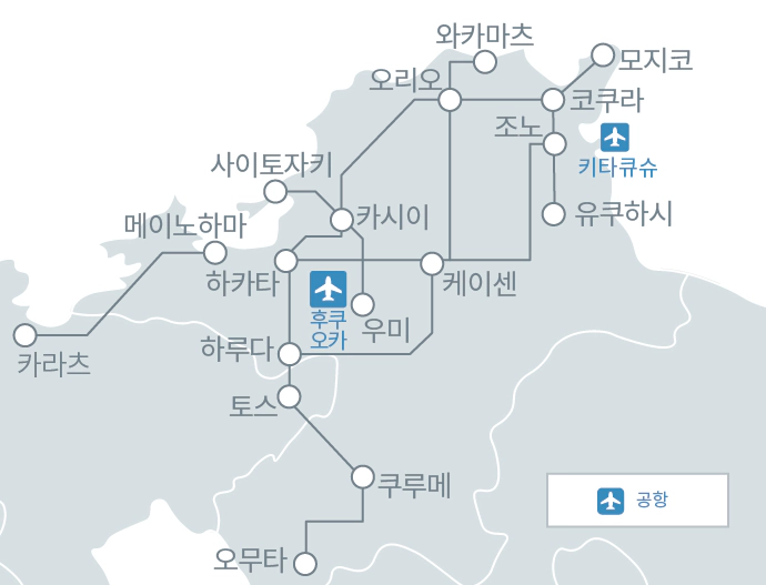 | 하카타~쿠루메 | 특급열차 | 1,510엔 |