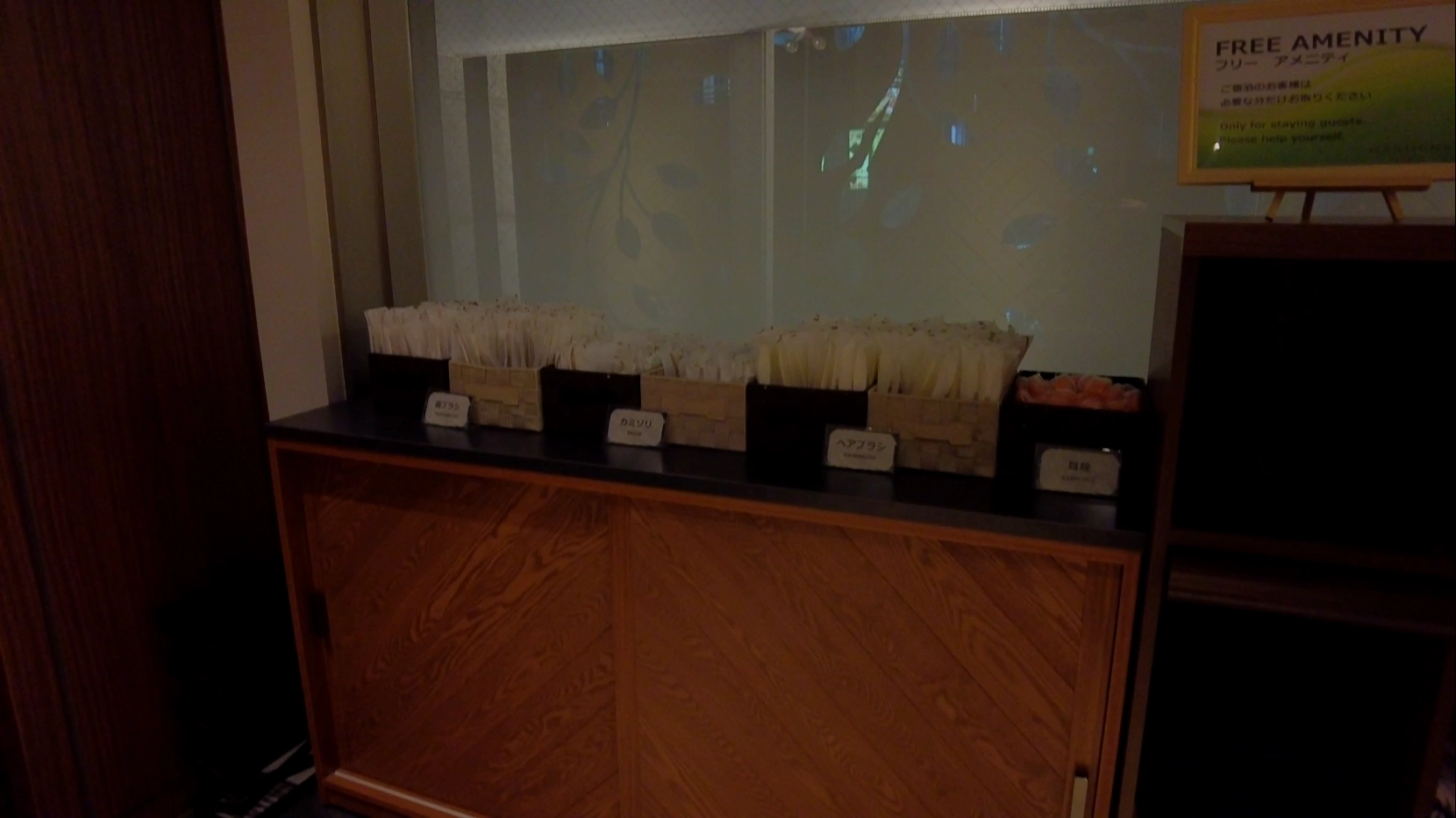 프론트와 라운지가 있는 2층의 엘리베이터 옆에 어메니티 코너가 있어요.