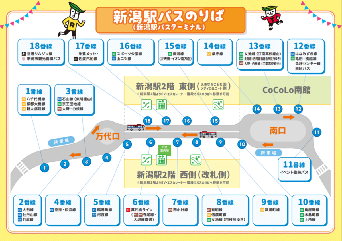 新潟駅バスターミナル開業について ※2/2追記情報あり 新潟駅高架化事業に伴い、新潟駅バスターミナルが開業いたします。 駅下のバスターミナルとなるため、鉄道⇔バスの乗換えがスムー