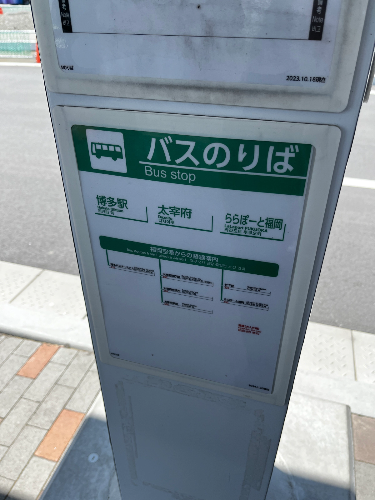 하카타역으로 가는 버스는 저기서 기다리다가 버스가 오면 타는 방식이에요!
