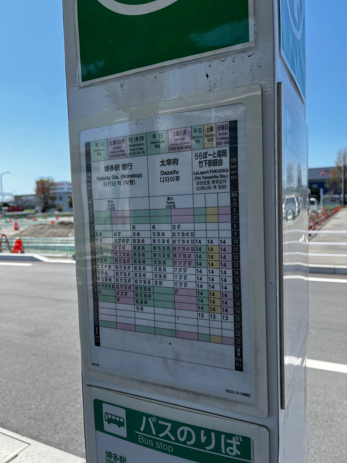 하카타역으로 가는 버스는 자주 있지만, 라라포트로 가는 버스는 1시간에 1대 뿐이네요.