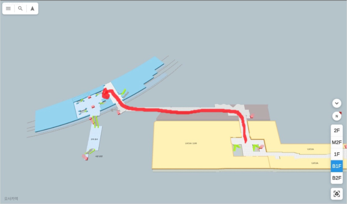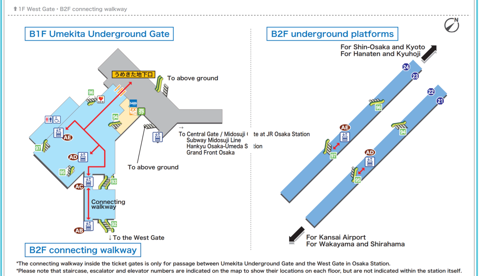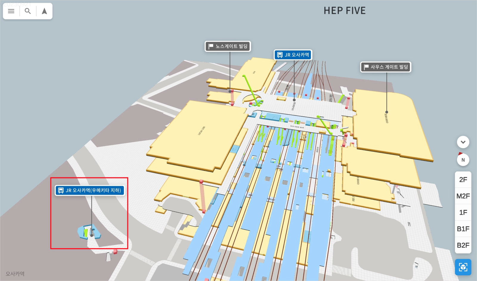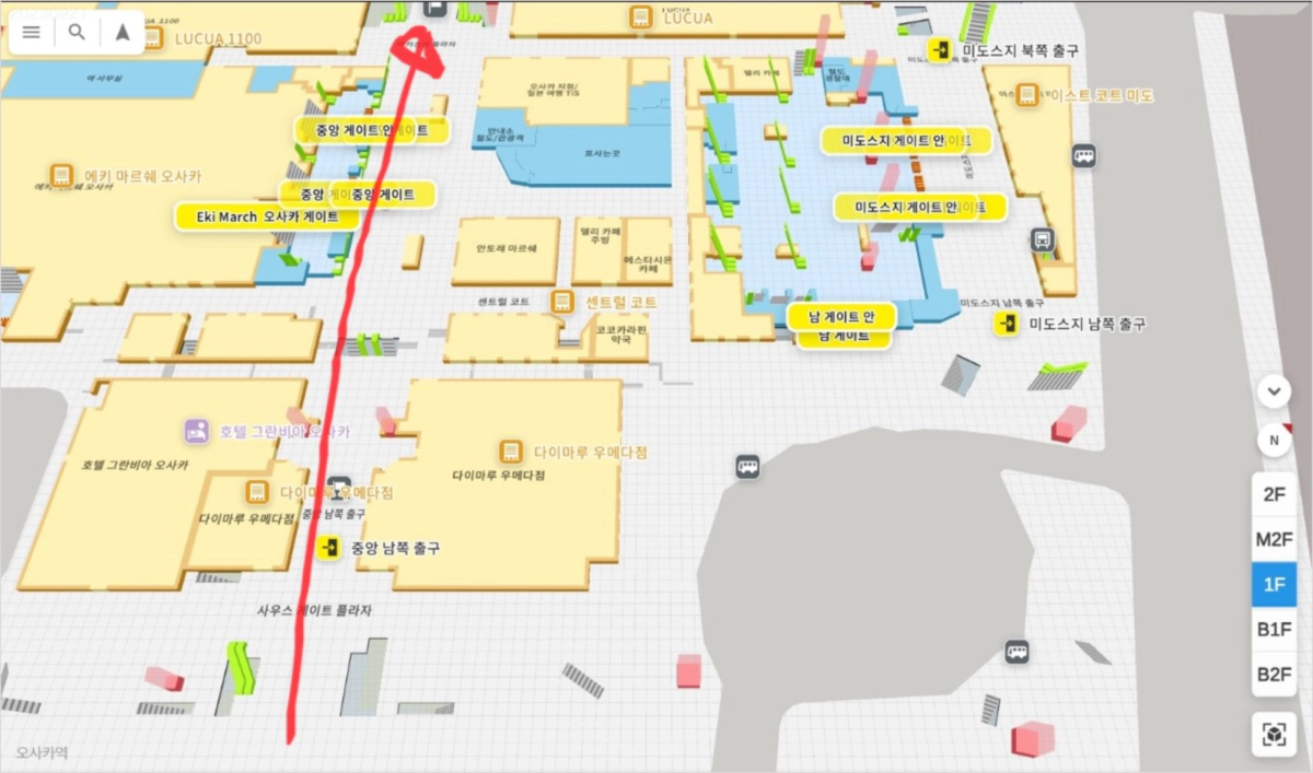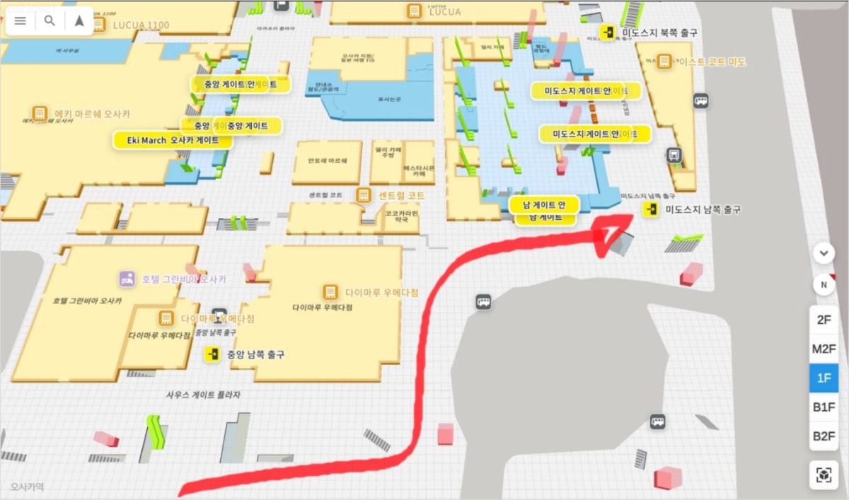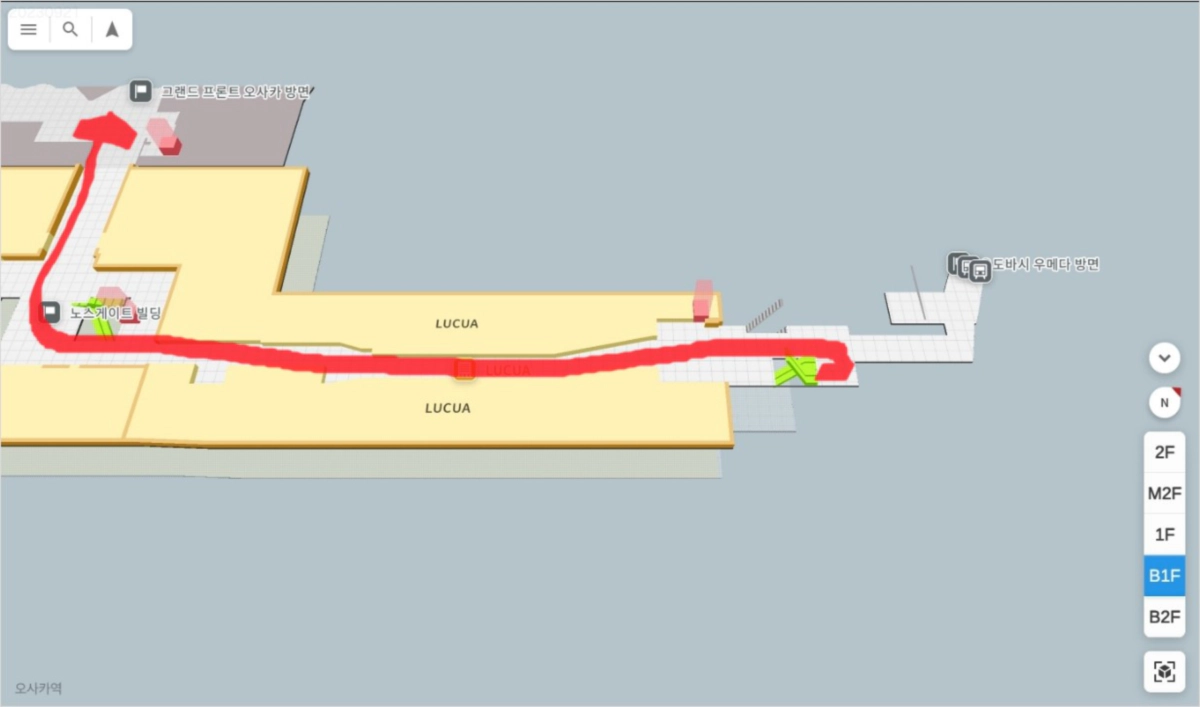 위의 3D 구내도를 참고하여 오사카역과 우메키타 지하 출구의 위치를 쉽게 알 수 있도록 정리해봤어요