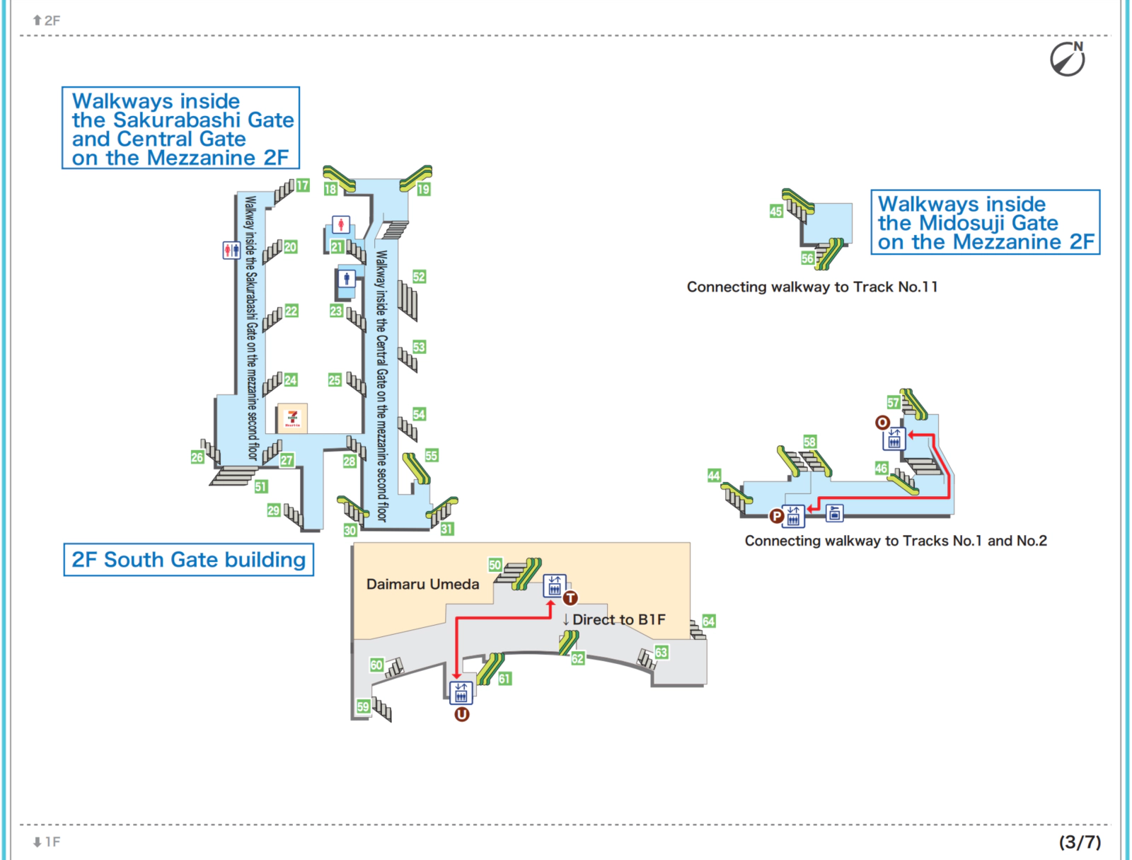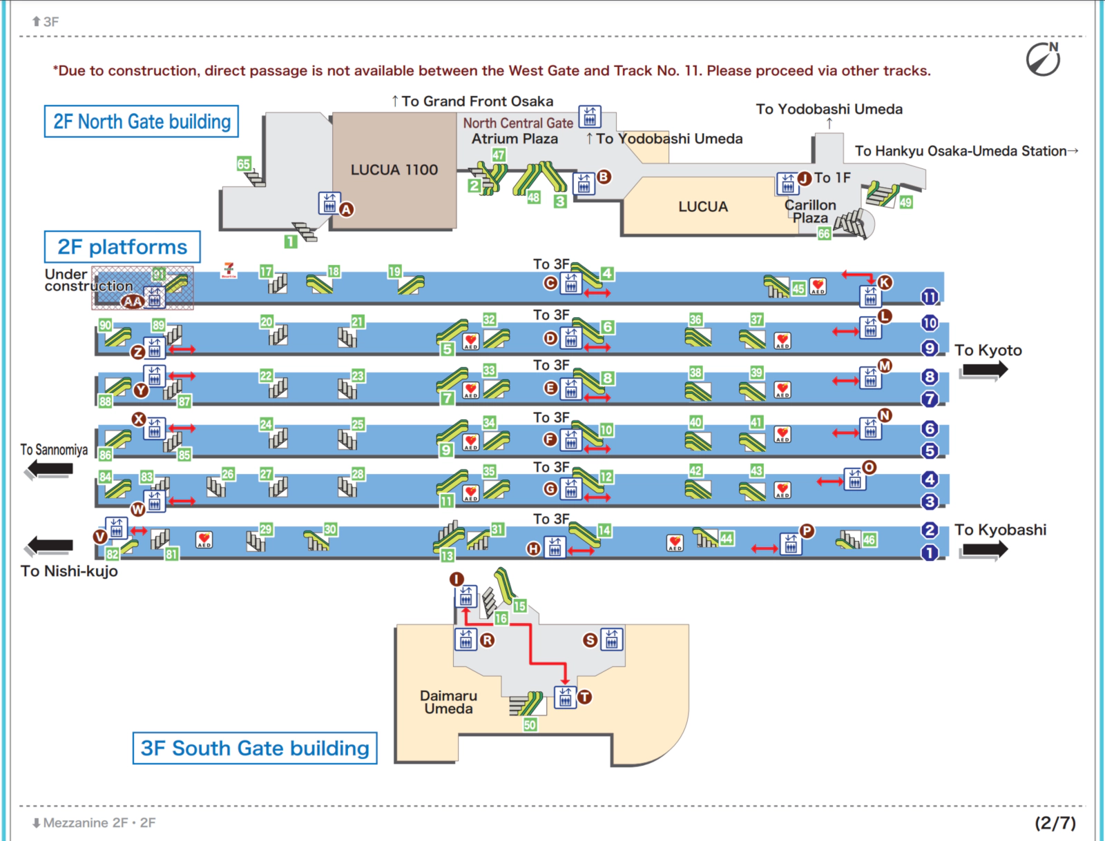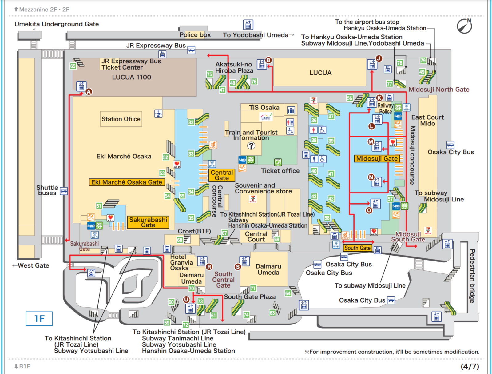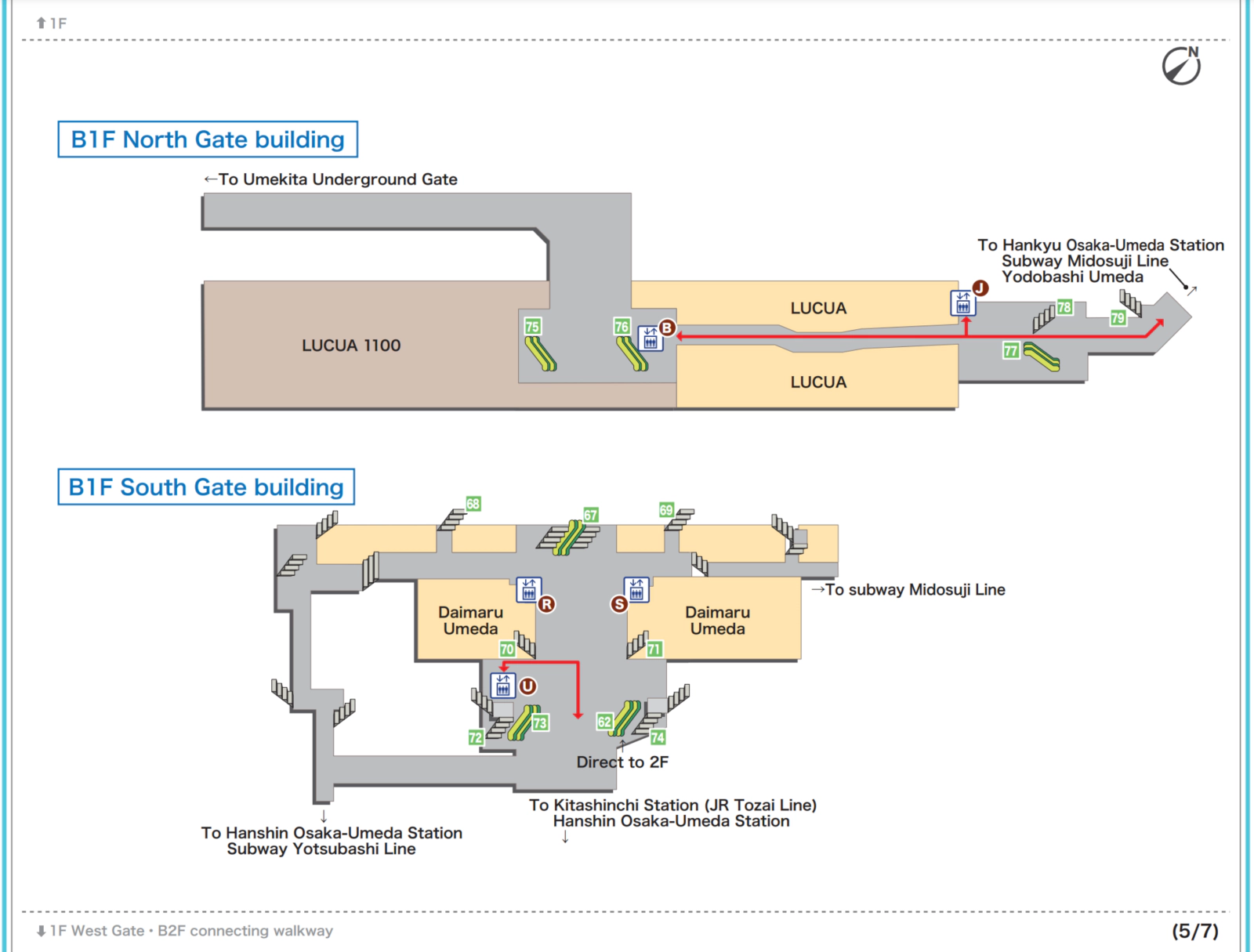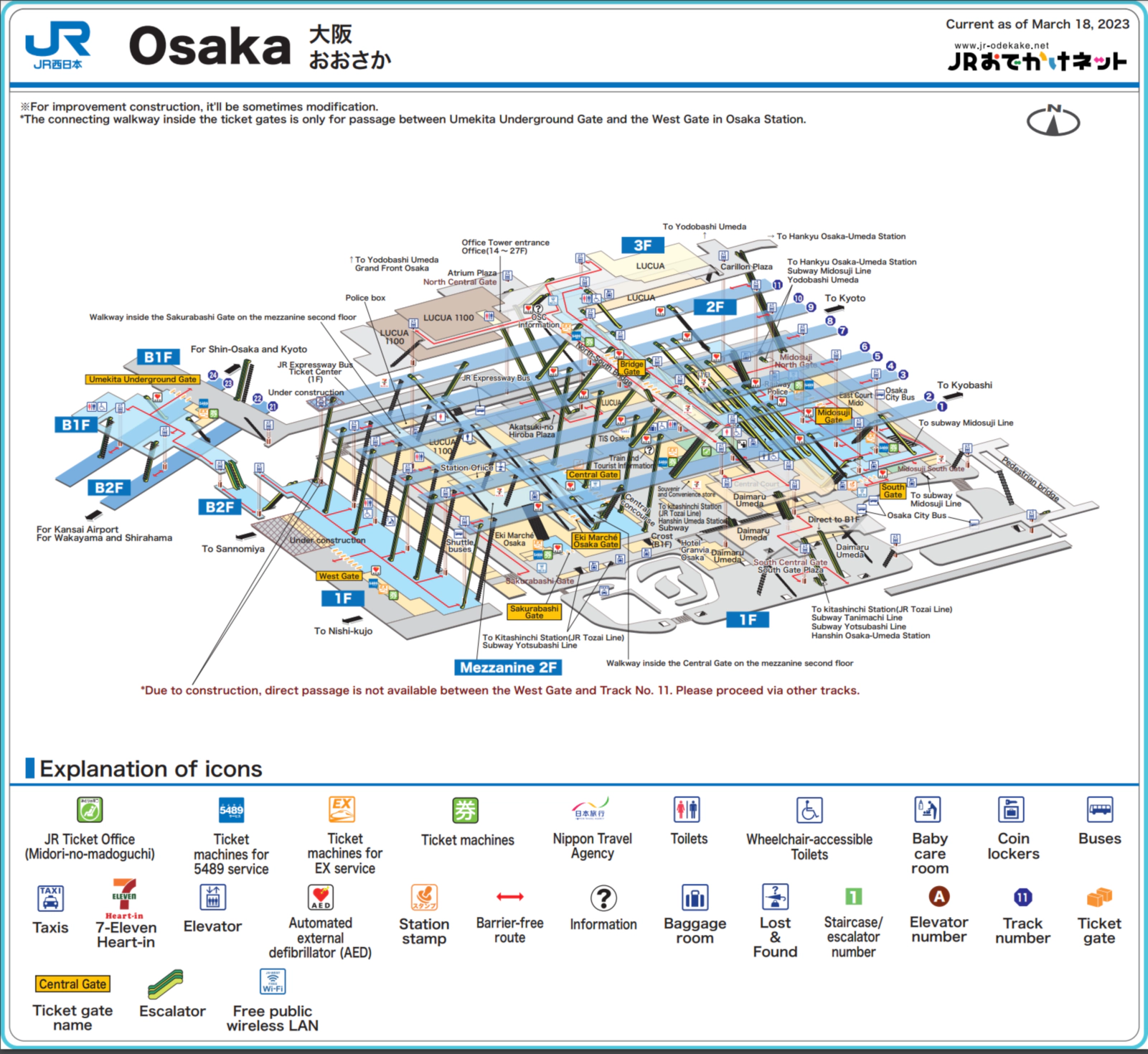 위의 3D 구내도를 참고하여 오사카역과 우메키타 지하 출구의 위치를 쉽게 알 수 있도록 정리해봤어요