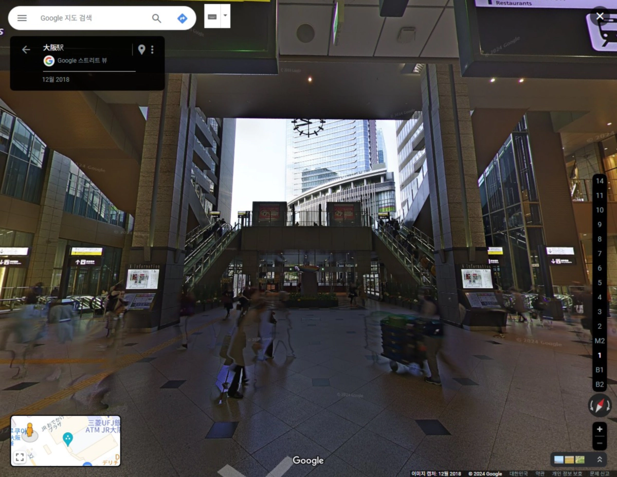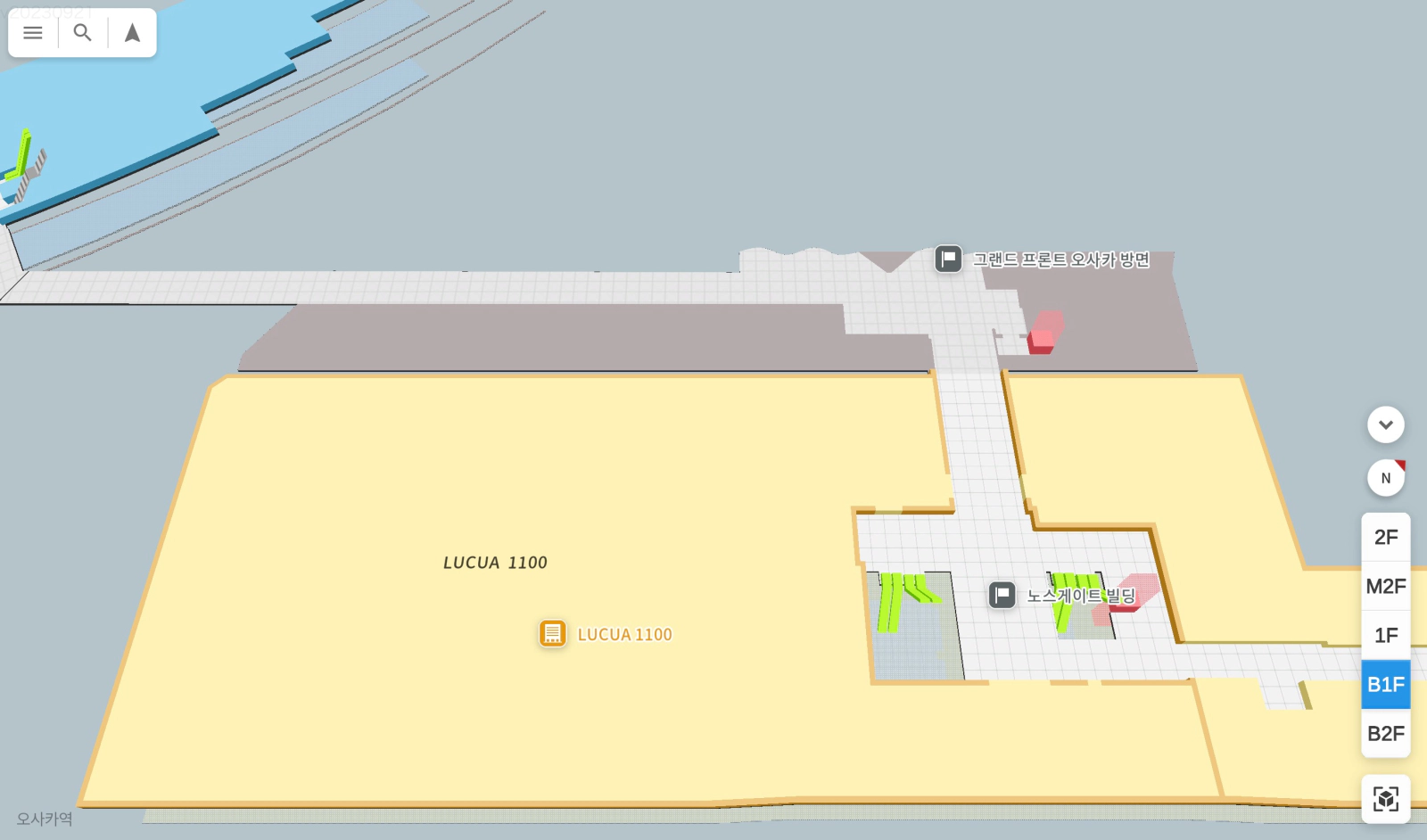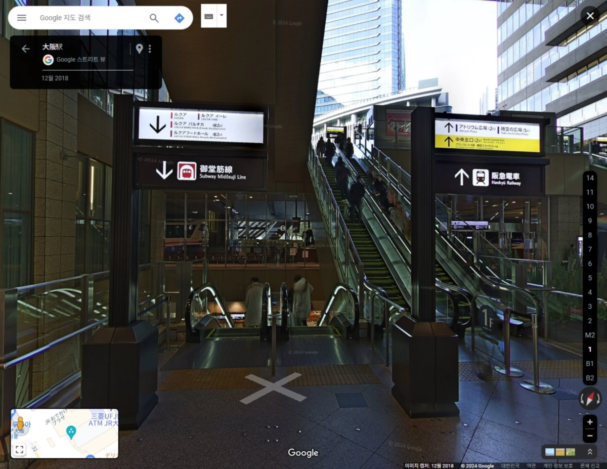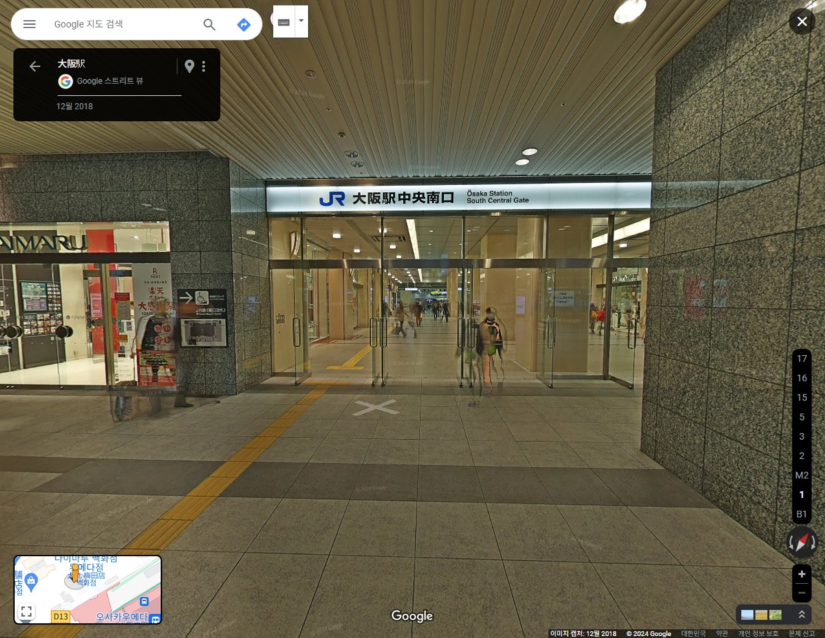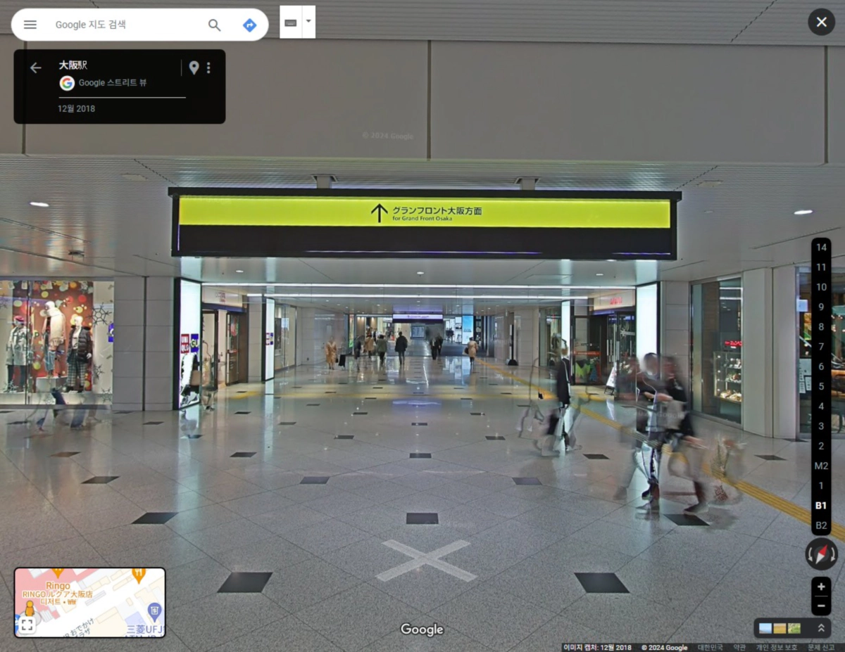 위치상으로 오사카역 북쪽에 있는 '그랜드 프론트 오사카' 아래에 있는 길과 연결된 모습이에요.