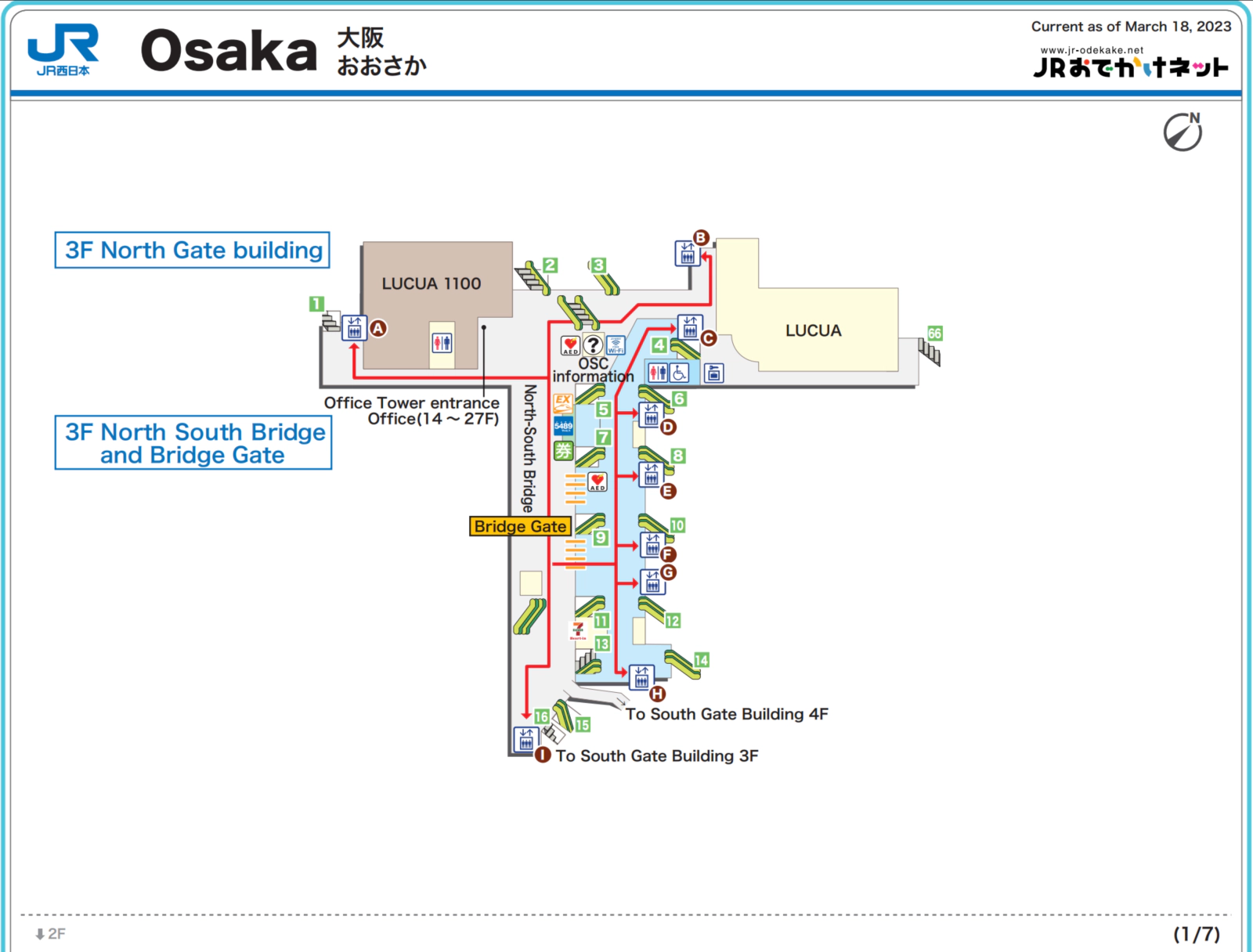 JR서일본에서도 오사카역이 복잡하다고 느꼈는지 3D 구내도를 만들어서 안내하고 있어요!