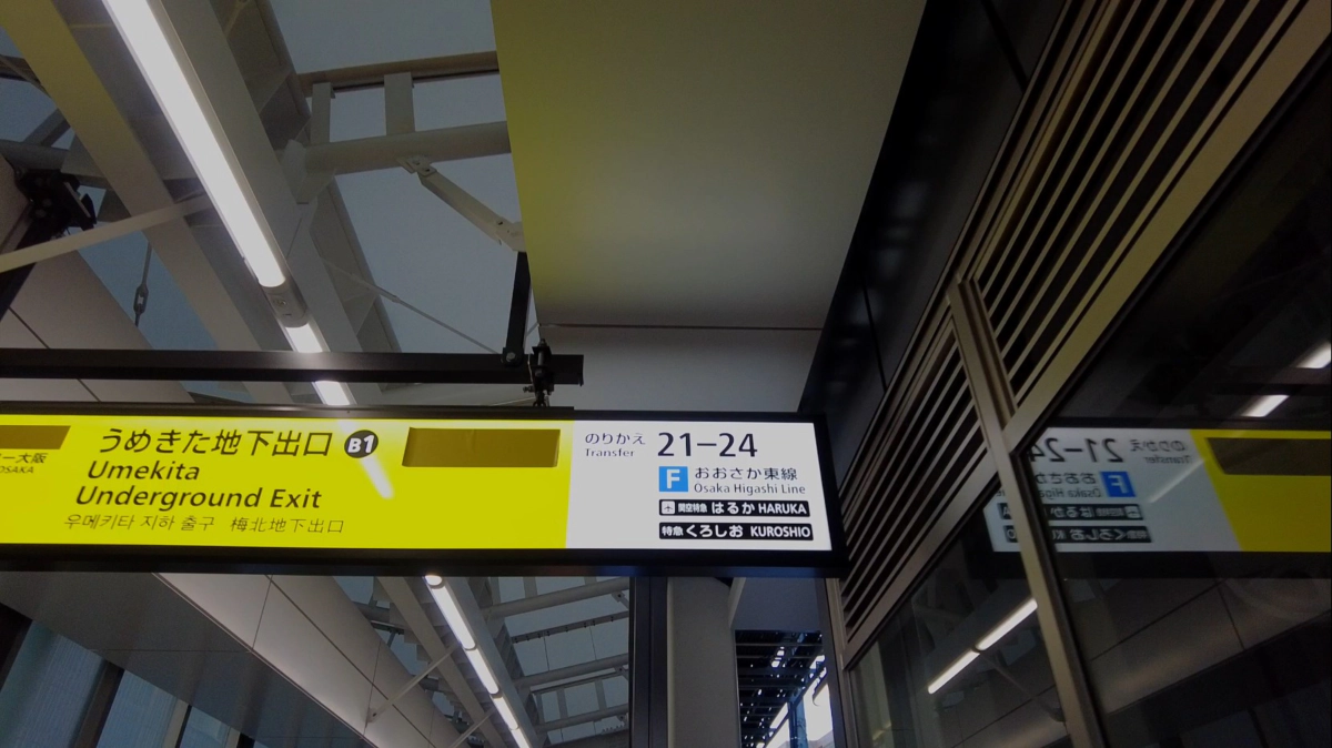 오사카역에는 여러 출구가 있지만 21~24번 승강장이 있는 곳을 '우메키타 지하 출구'라고 불러요.