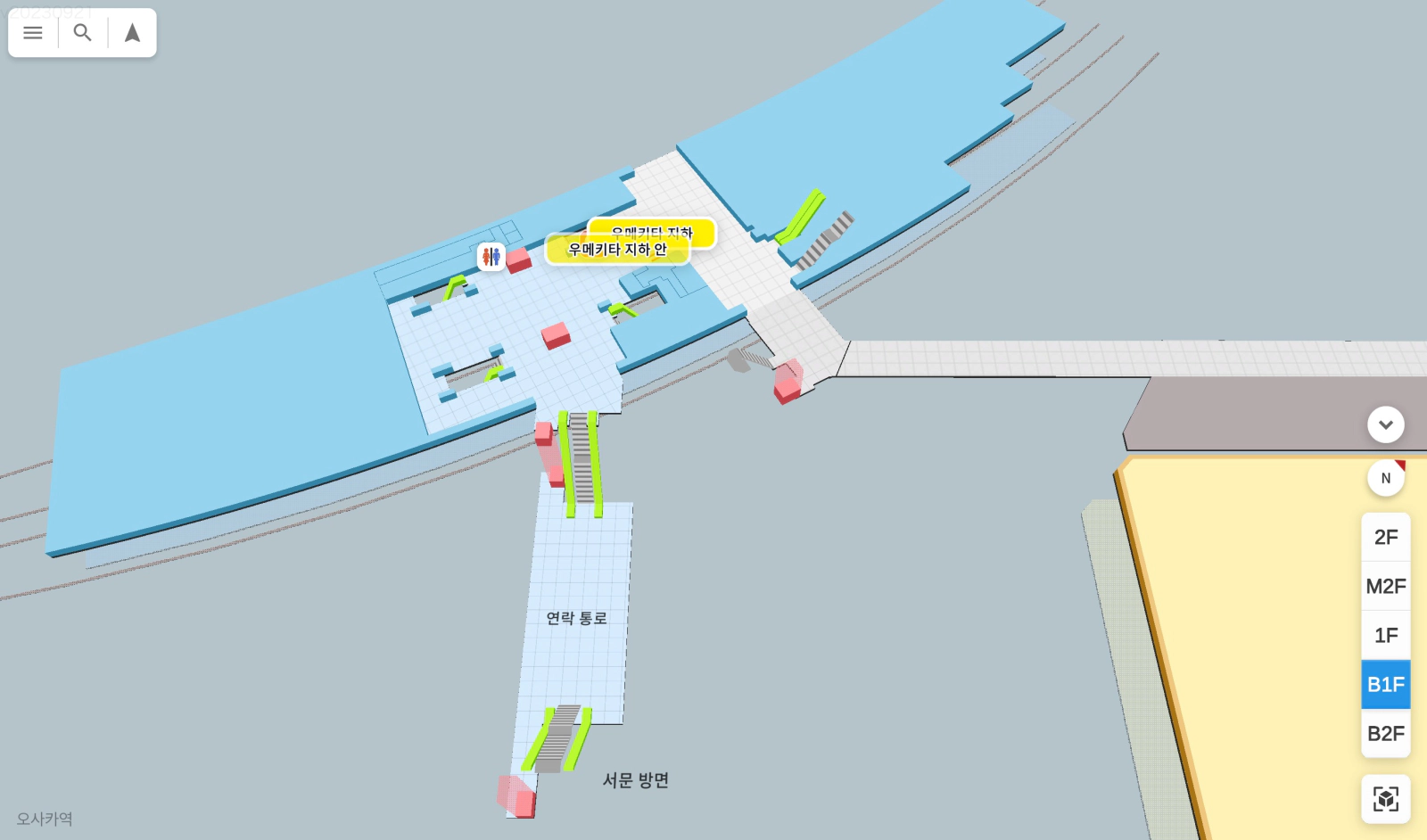 우메키타 지하를 확대해보면 저렇게 역과는 떨어져있는 모습이에요!