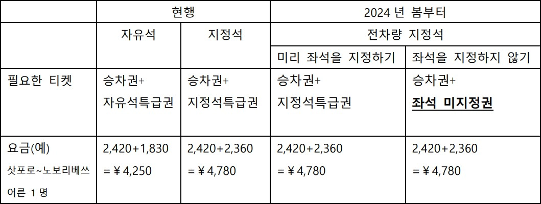 JR홋카이도: 2024년 봄부터 일부 특급열차의 '전차량 지정석화' 변경에 관하여