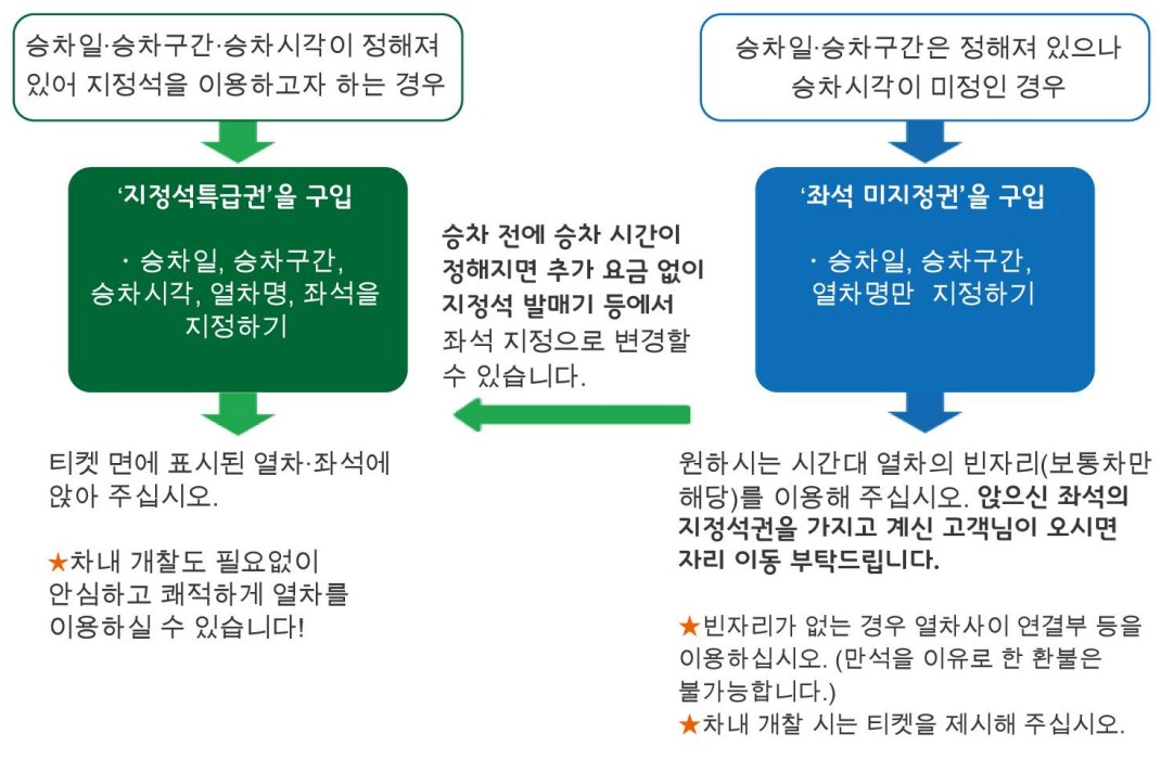 따라서 해당 특급열차들을 이용할 경우에는 승차 전에 지정석 지정을 하는 것을 권장드려요.
