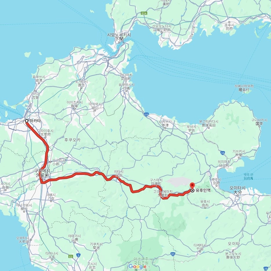 유후인으로 가는 길에 벳푸나 오이타 구경을 하면서 가려면 나름 괜찮은 방법이기도 해요!