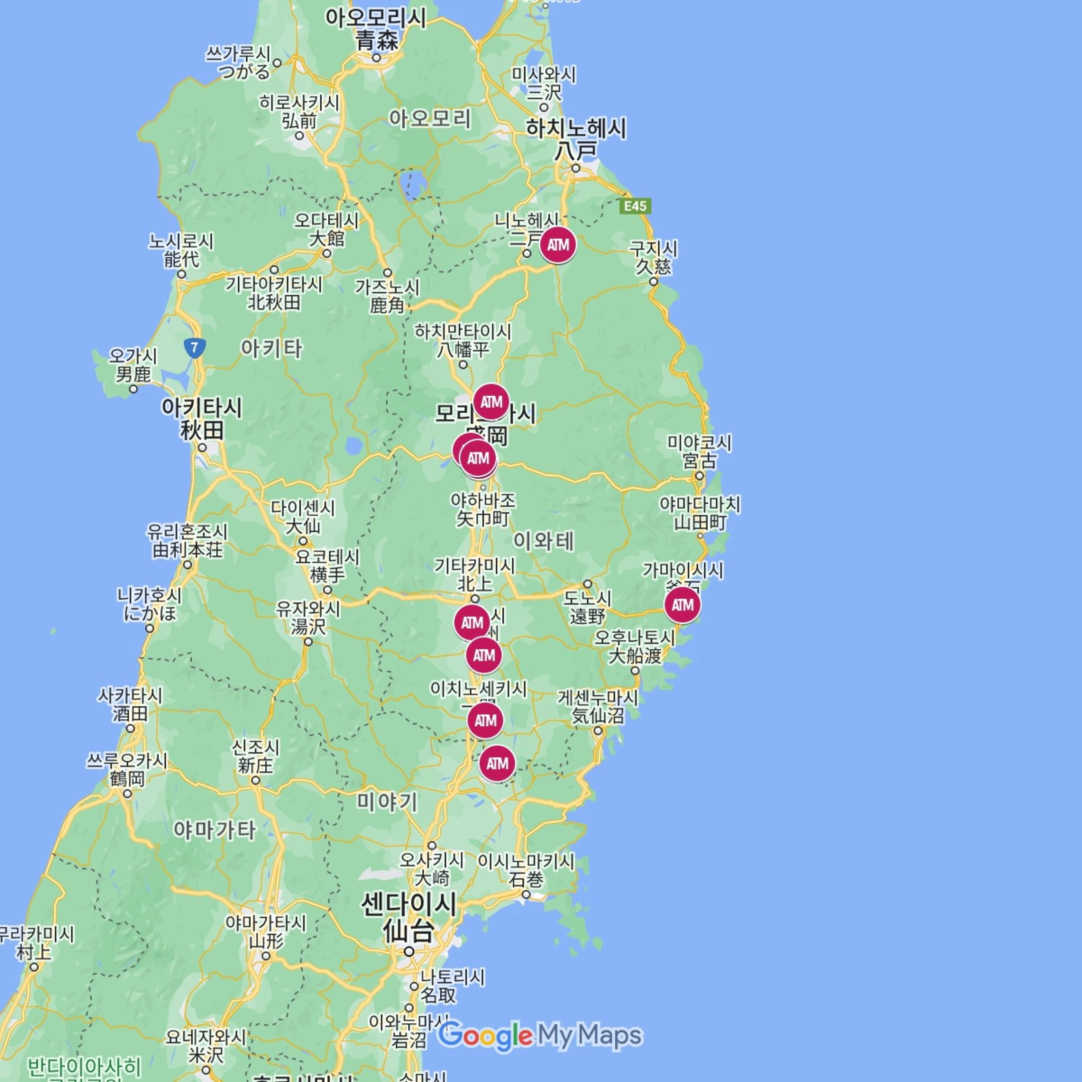 일본 지방도시 이온ATM 위치 정리! 도호쿠 편