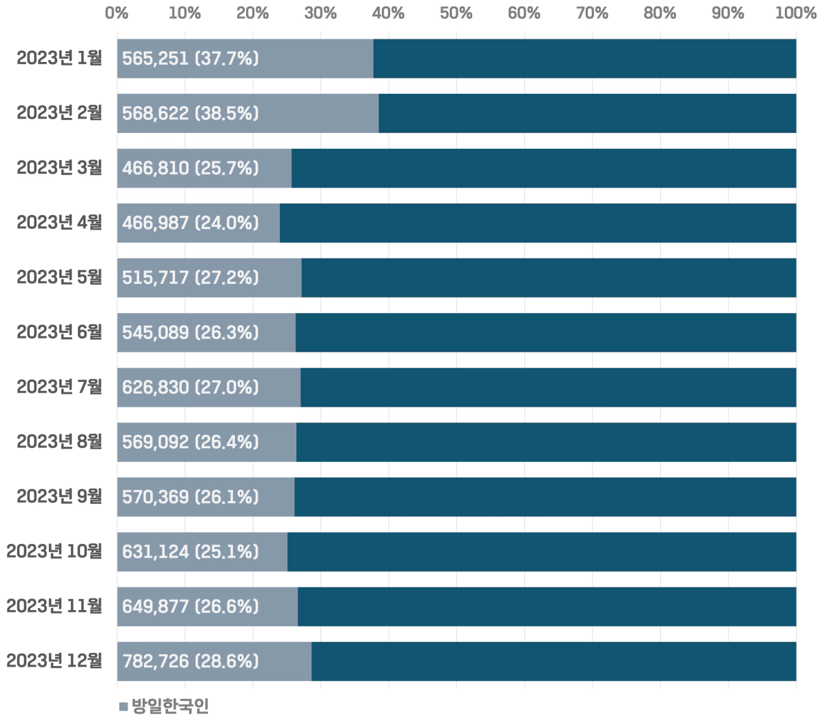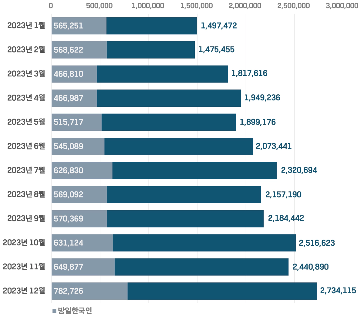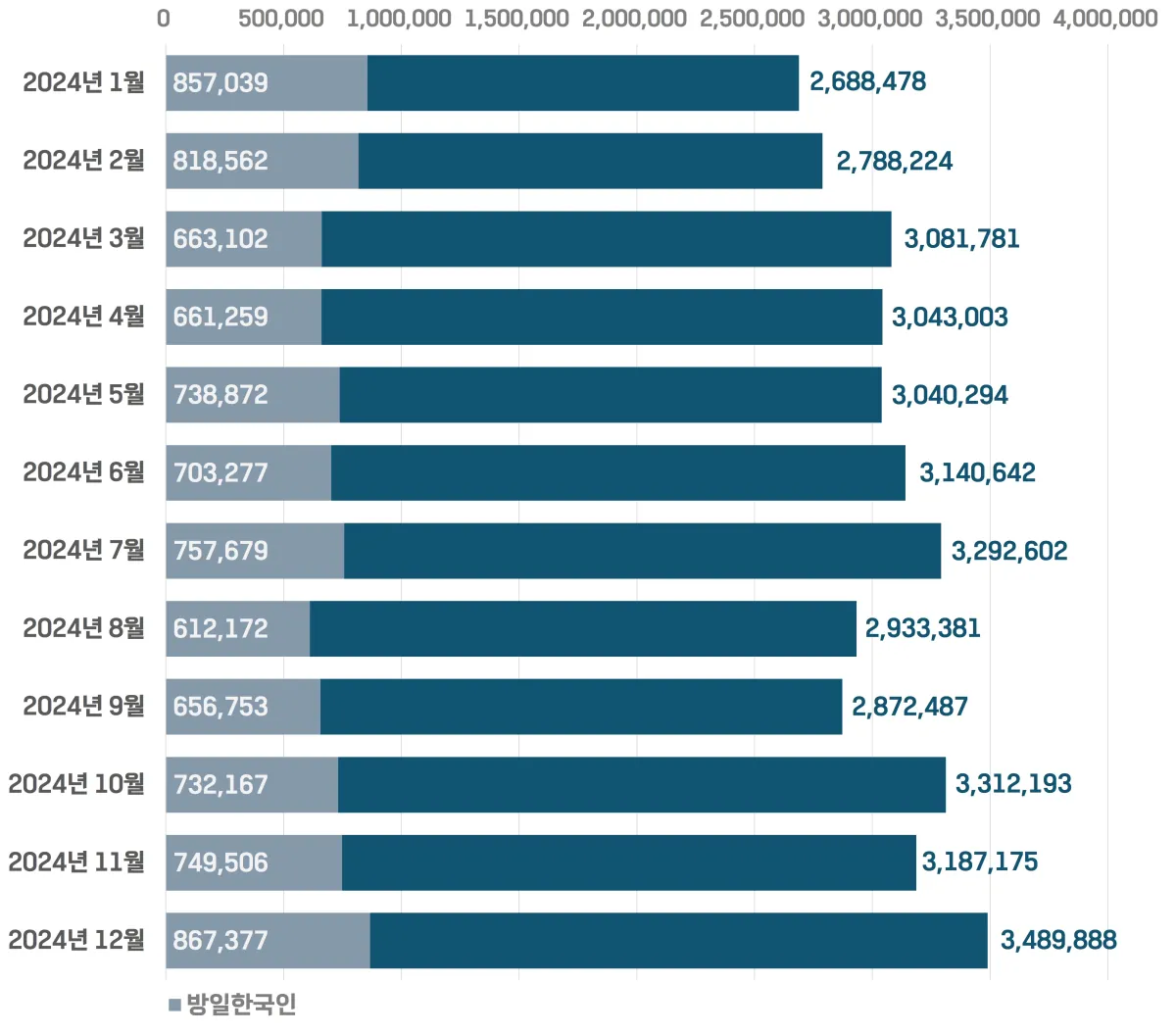 한국인은 일본여행을 얼마나 갈까? 방일외국인/방일한국인 추이 분석(업데이트 2025. 04. 21.)