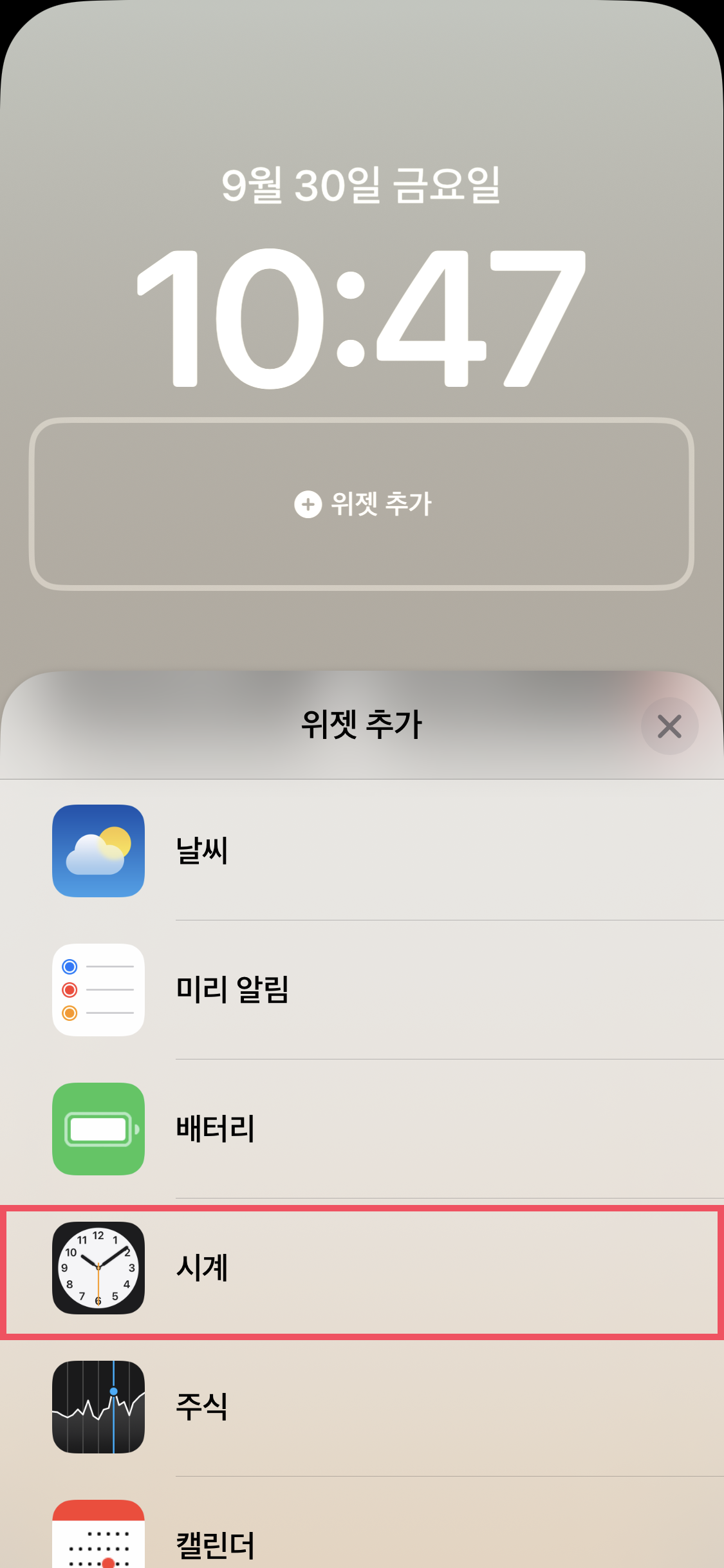 추가한 시계 위젯을 눌러주면 어떤 도시의 시간을 보여줄지 설정이 열립니다. 기본 시계는 현지시간으로 보이니 서울 시간으로 설정해줍니다.