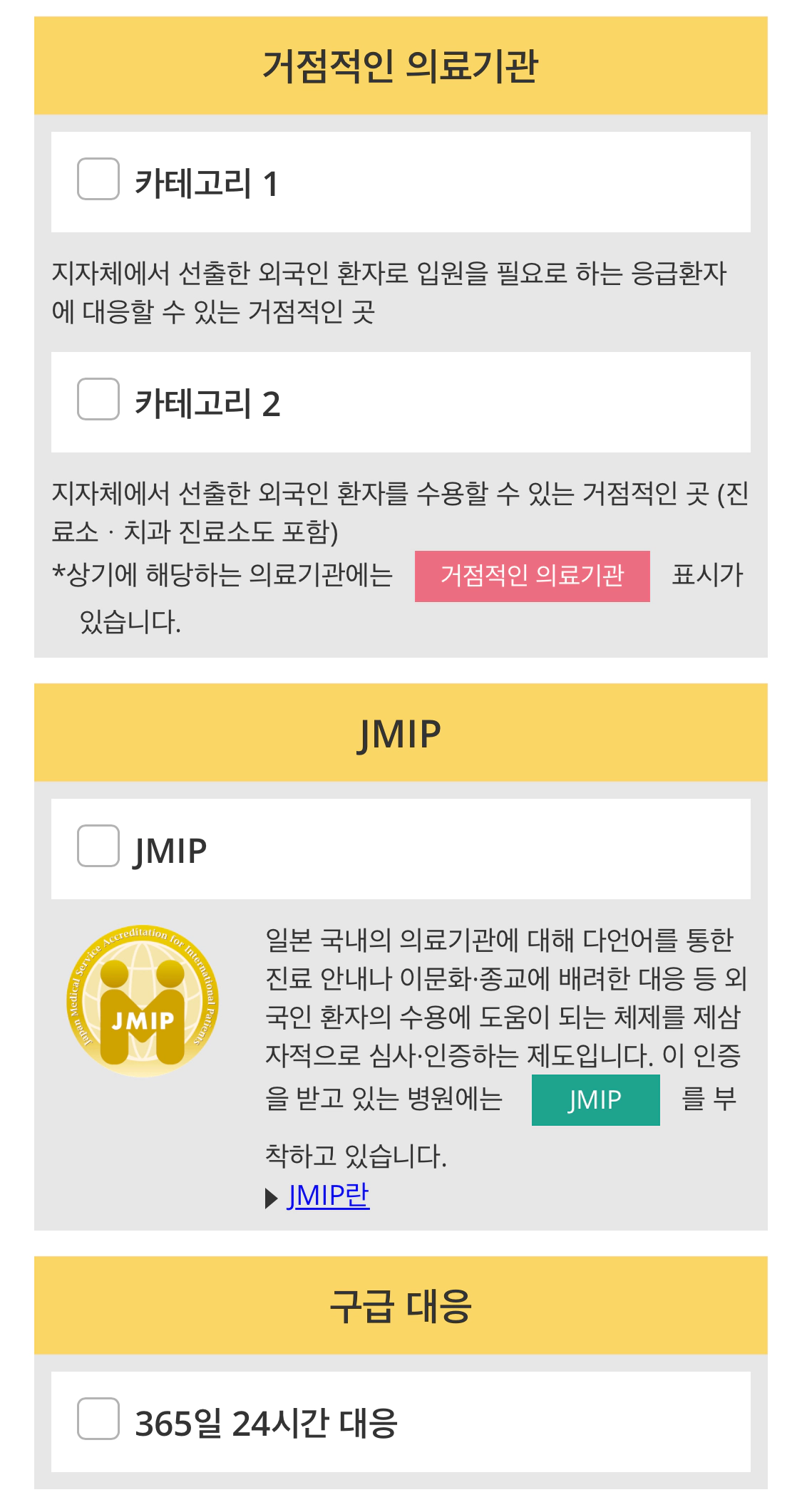 그 외에 거점 의료기관이나 구급 대응 가능한 병원을 선택할 수도 있어요.