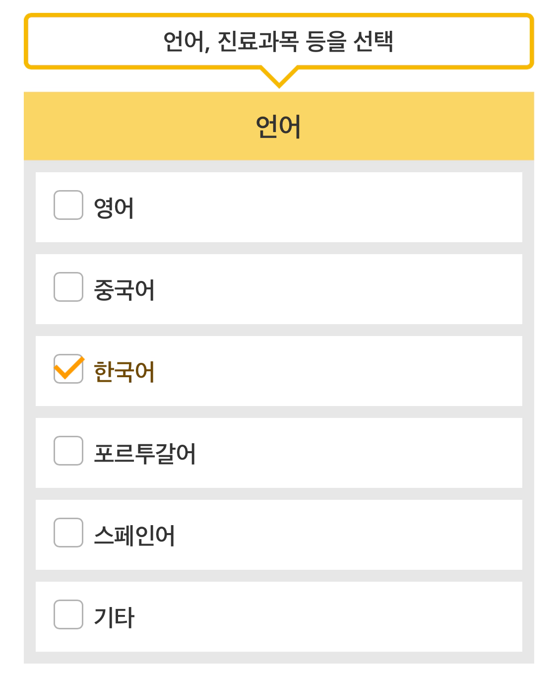 언어/진료과 선택하기