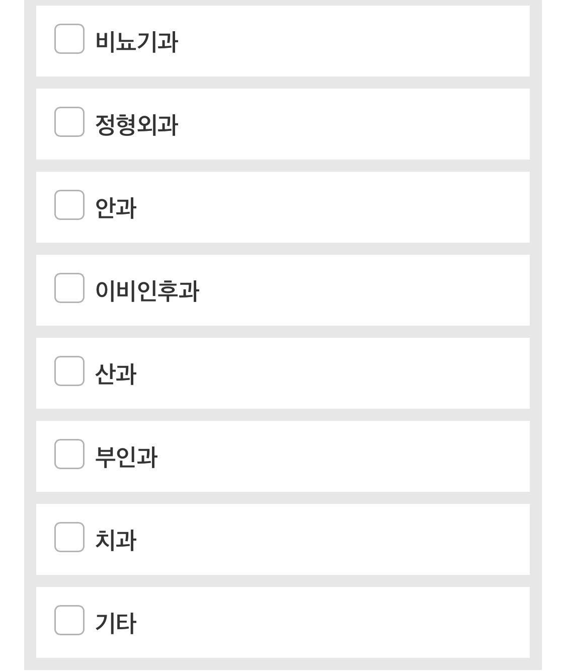 우리나라 기준으로 한국어를 선택하고, 현재 진료가 필요한 과목을 선택해요.