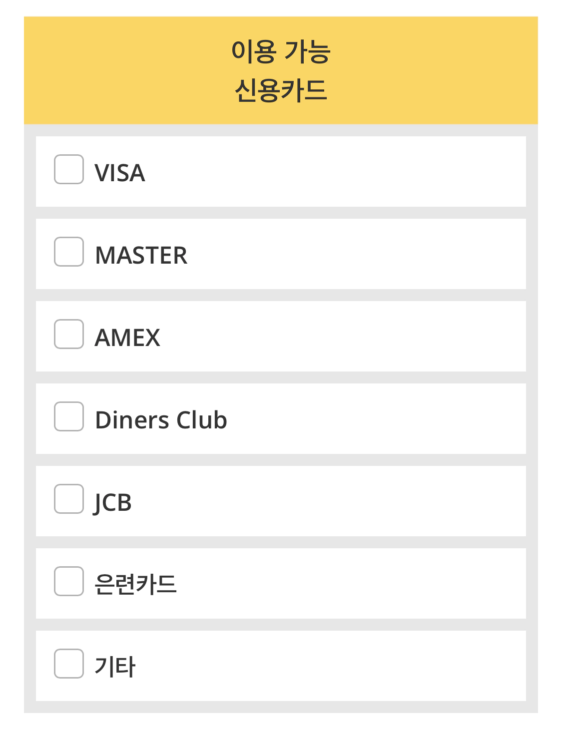 선택사항: 이용 가능 신용카드 브랜드 선택, 기타 선택