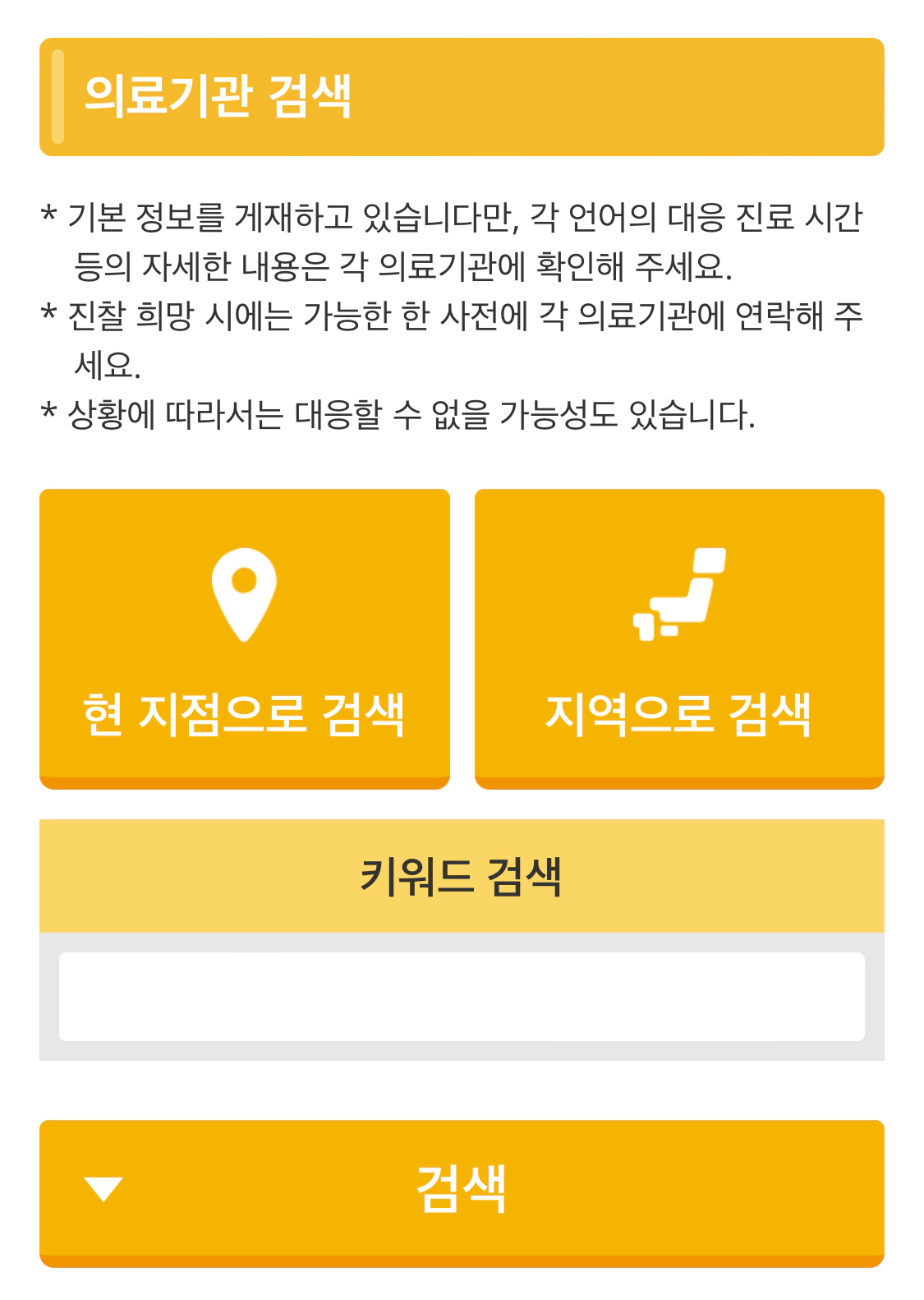 의료기관 검색: 현 지점으로 검색/지역으로 검색