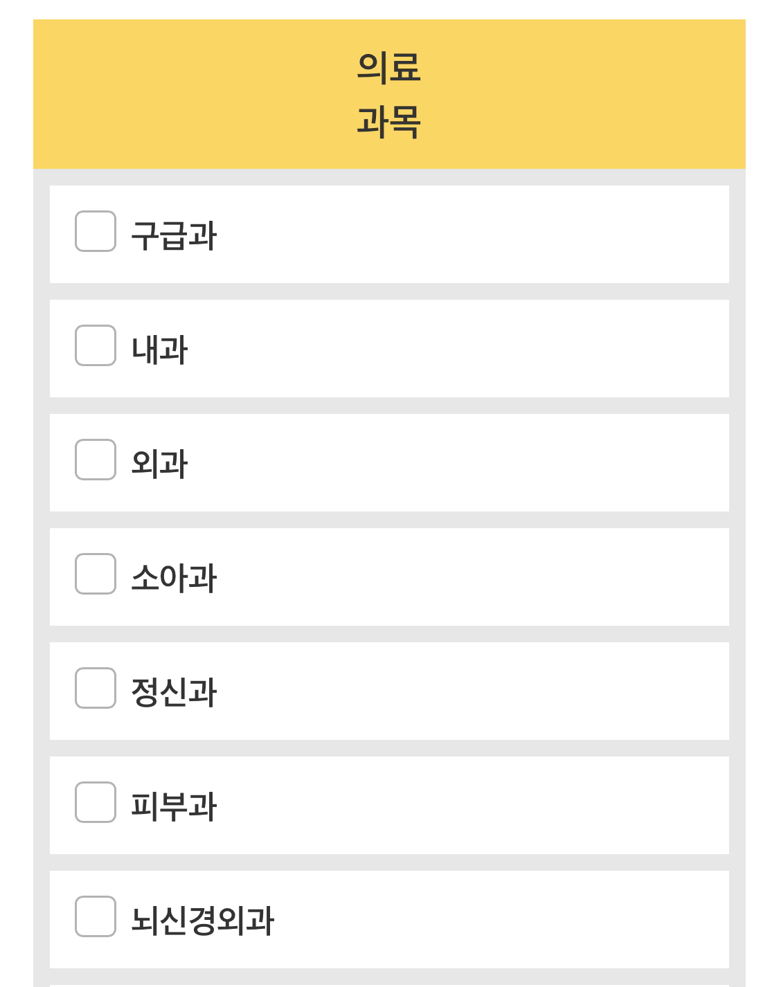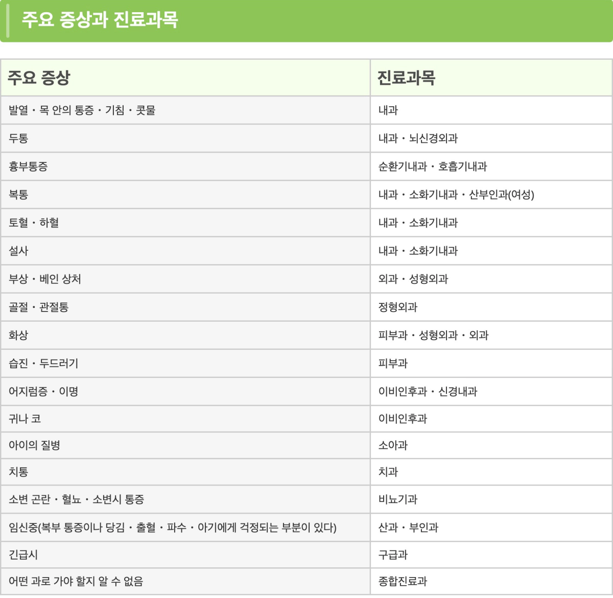주요 증상에 따른 진료과목이에요!