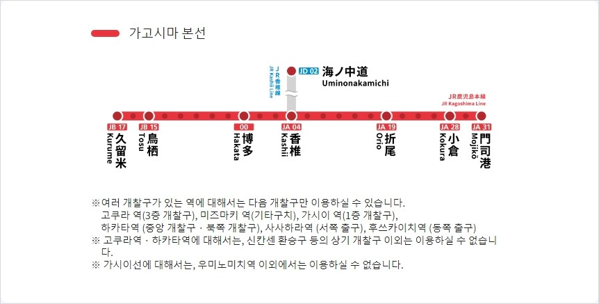 *노선 중 일부 역(우미노나카미치역, 가시이역)에서만 터치결제 이용이 가능해요!