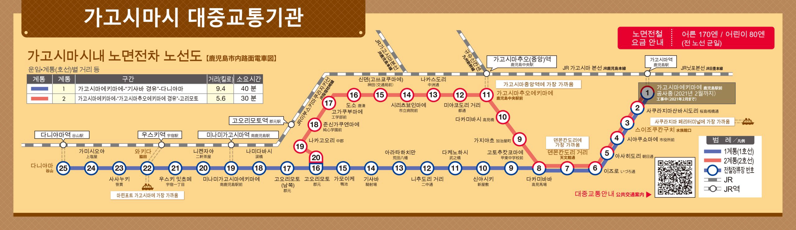 | 구간 | 가고시마 노면전차 시덴 1/2계통 전 노선 |