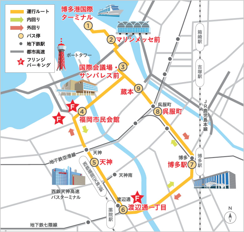 | 구간 | 후쿠오카공항 국제선(2번 승강장)~하카타역(하카타 버스 터미널 11번 정류장) |