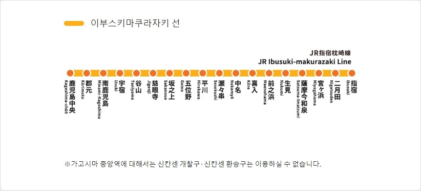 | 구간 | 이부스키마쿠라자키선(가고시마추오~이부스키 전체 역) [총 18개 역] |