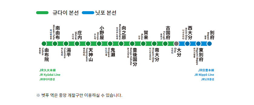 | 구간 | 닛포 본선(벳푸~오이타) 규다이 본선(오이타~유후인) [총 16개 역] |