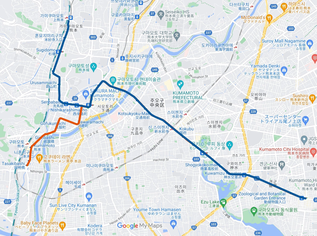 | 구간 | 구마모토시 노면전차 A/B계통 전 구간 |