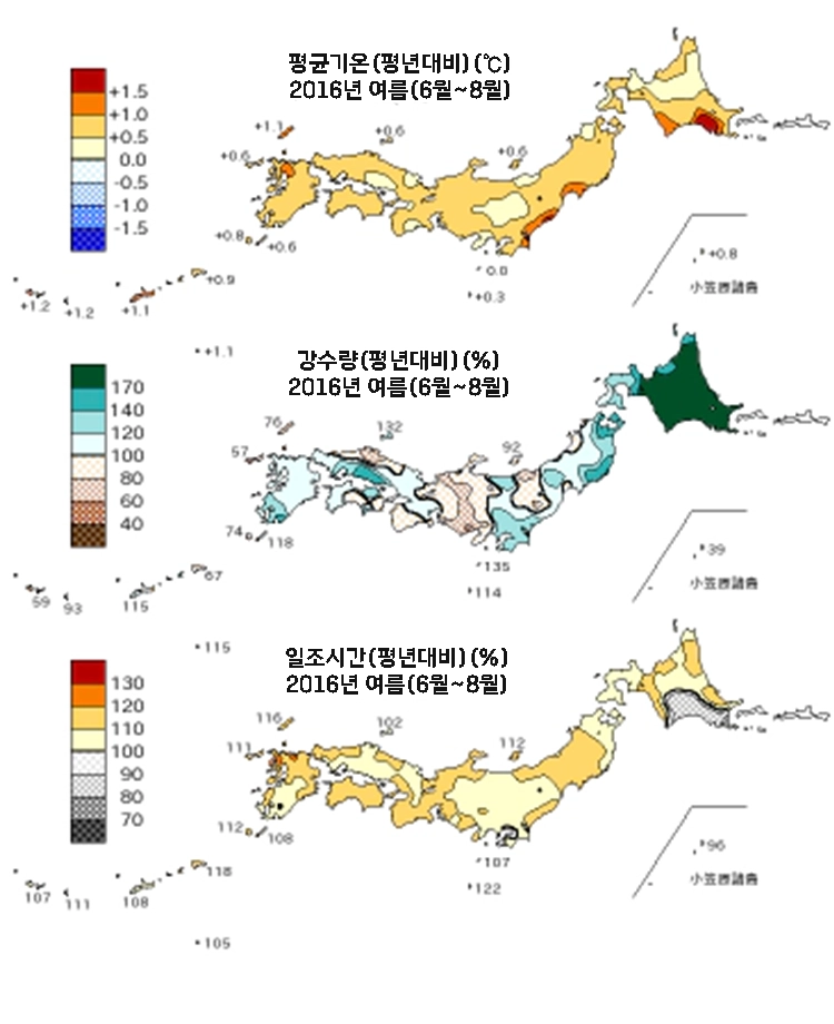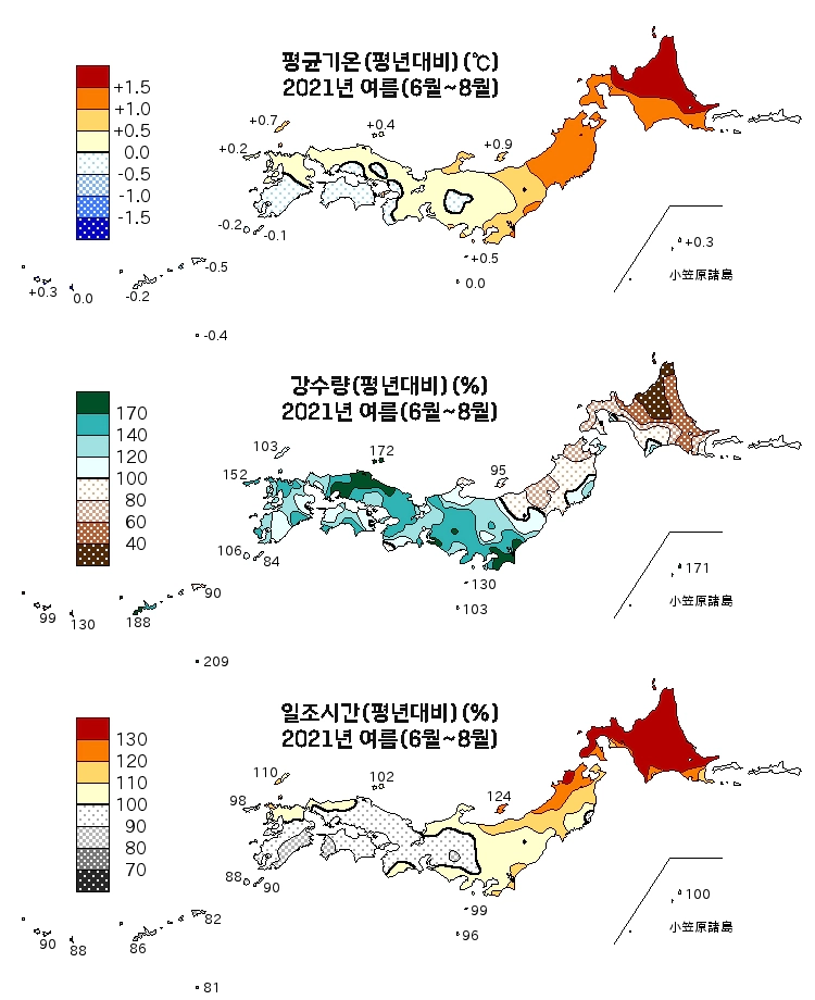일본기상청에서는 월별, 봄(3~5월), 여름(6~8월), 가을(9~11월), 겨울(12~2월), 연간 날씨에 대해 평균기온, 강수량, 일조시간이 평년대비 어느정도였는지를 분석해서 보도자료로 발표하고 있어요!