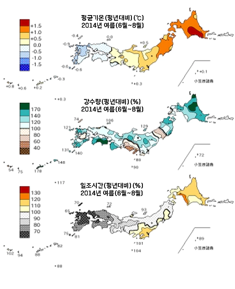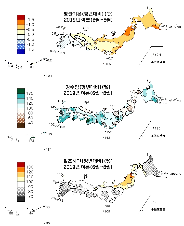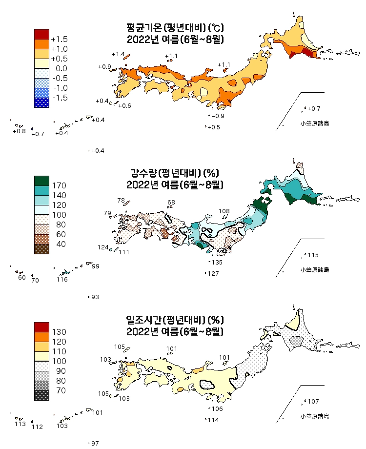 일본기상청에서는 월별, 봄(3~5월), 여름(6~8월), 가을(9~11월), 겨울(12~2월), 연간 날씨에 대해 평균기온, 강수량, 일조시간이 평년대비 어느정도였는지를 분석해서 보도자료로 발표하고 있어요!