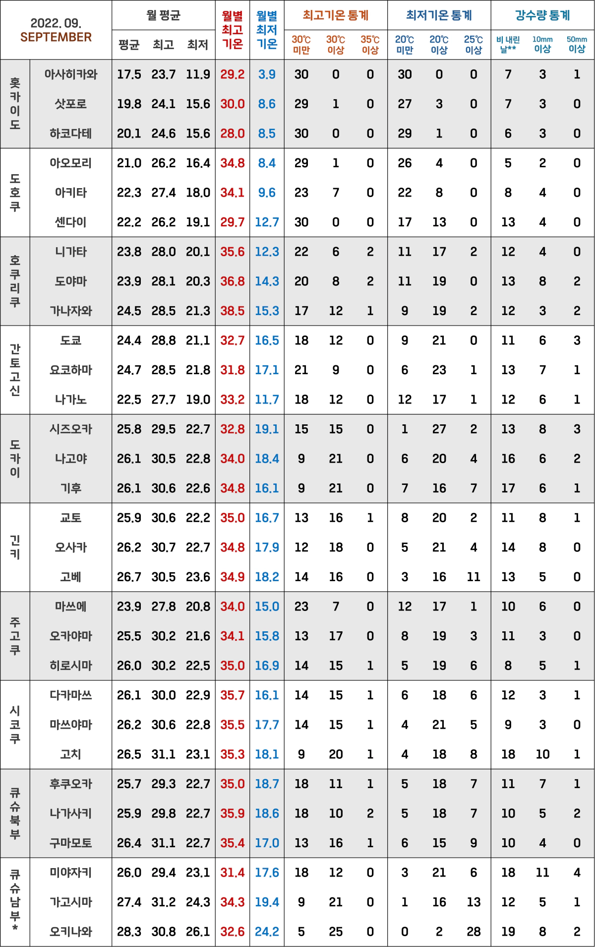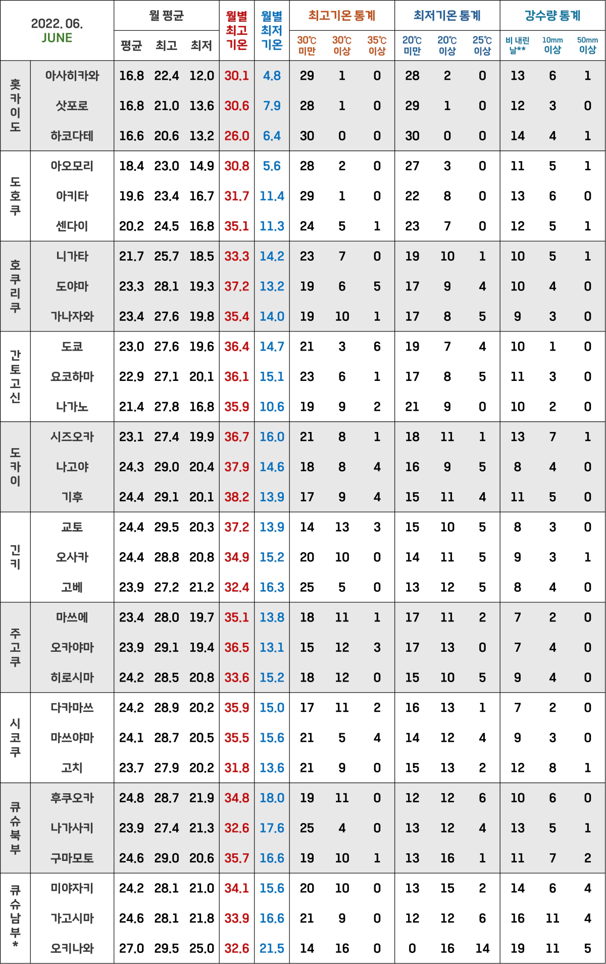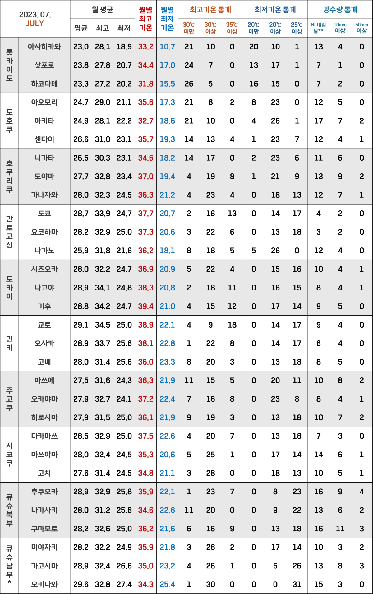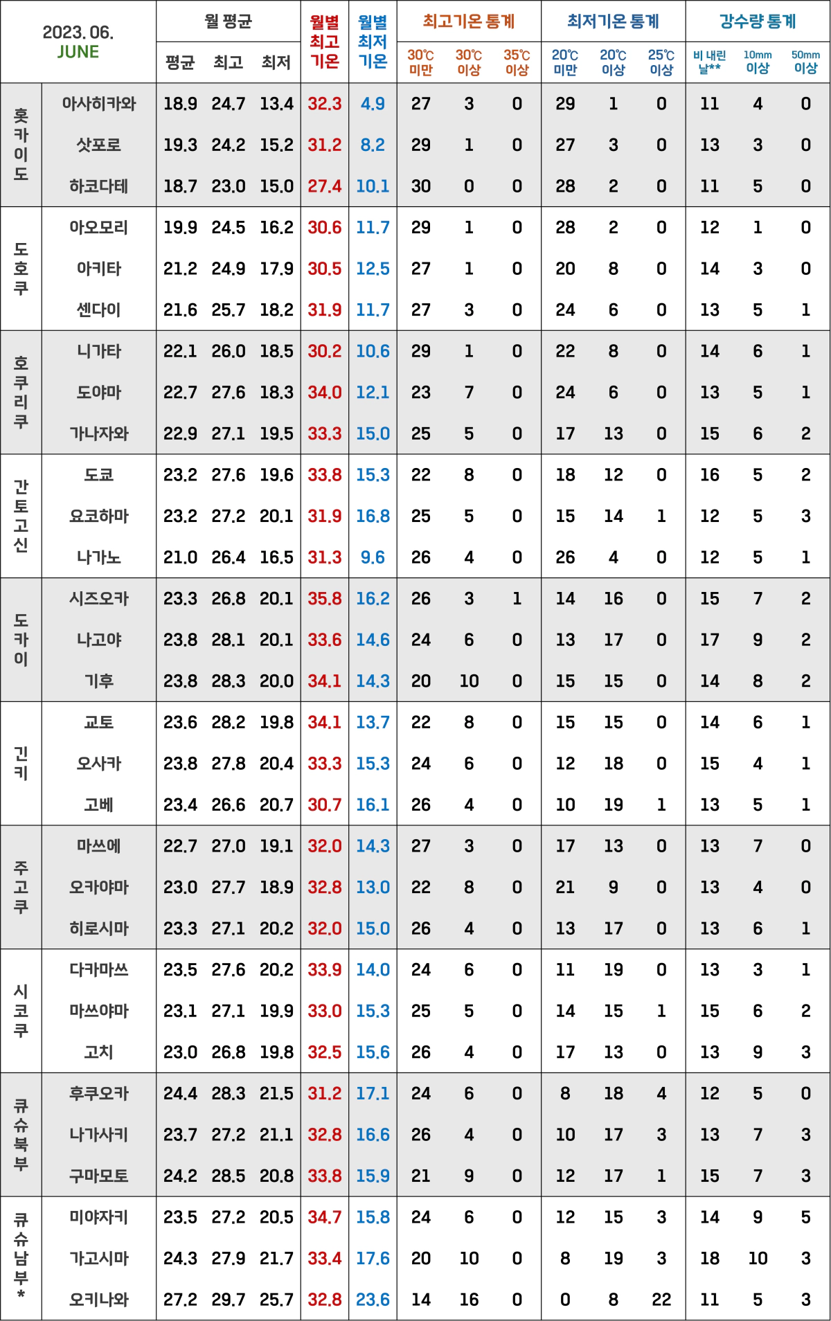 *위에도 적었지만 일본 기상청에서는 주고쿠 지방의 야마구치현을 큐슈북부 지방으로 포함시켜요!