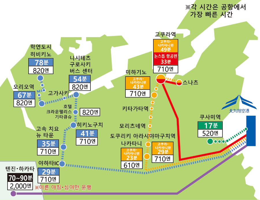 공항 교통편 정리! 기타큐슈 공항 편(버스시간표/요금/타는 곳)