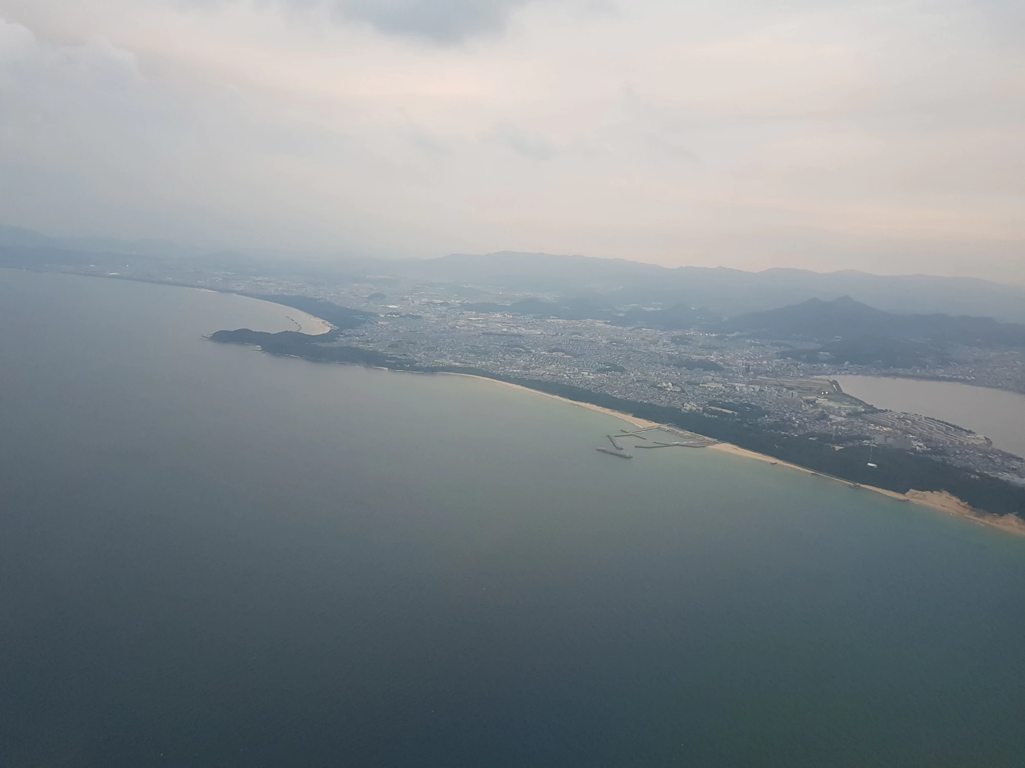 이륙 후 1시간 정도 비행을 하니 어느새 후쿠오카의 모습이 보이기 시작해요.
