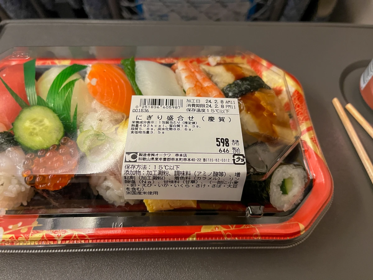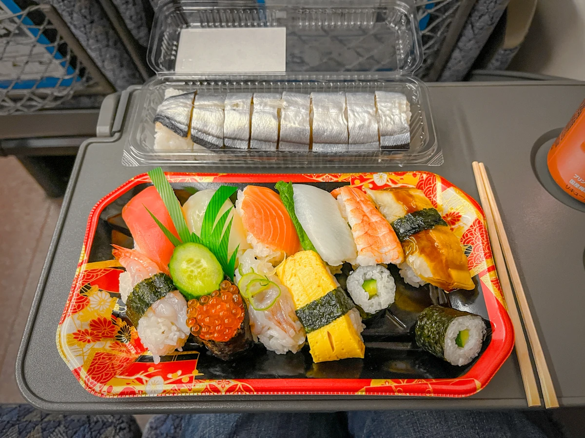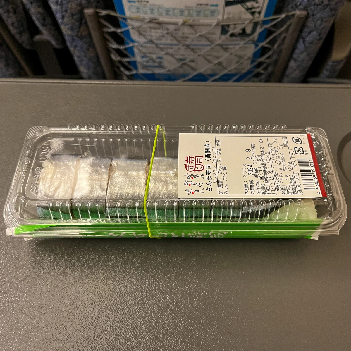 정말 특이한 초밥이라 생각되는 '꽁치초밥'을 슈퍼에서 발견해서 도전해 볼 생각으로 구입해서 오사카로 돌아가는 열차에서 먹어봤어요!