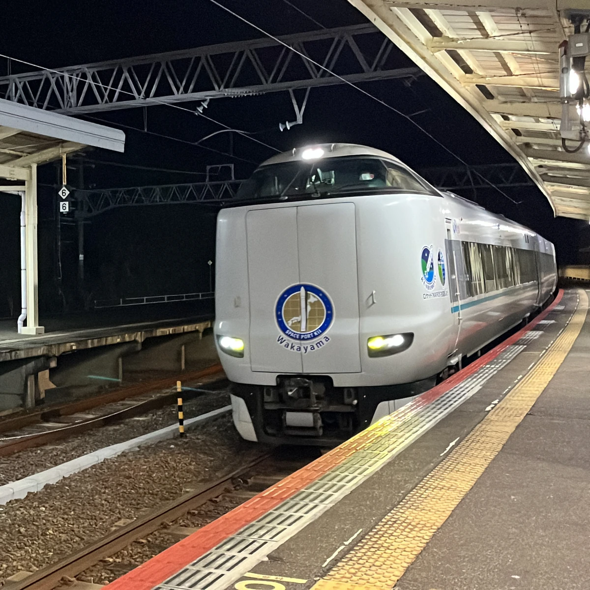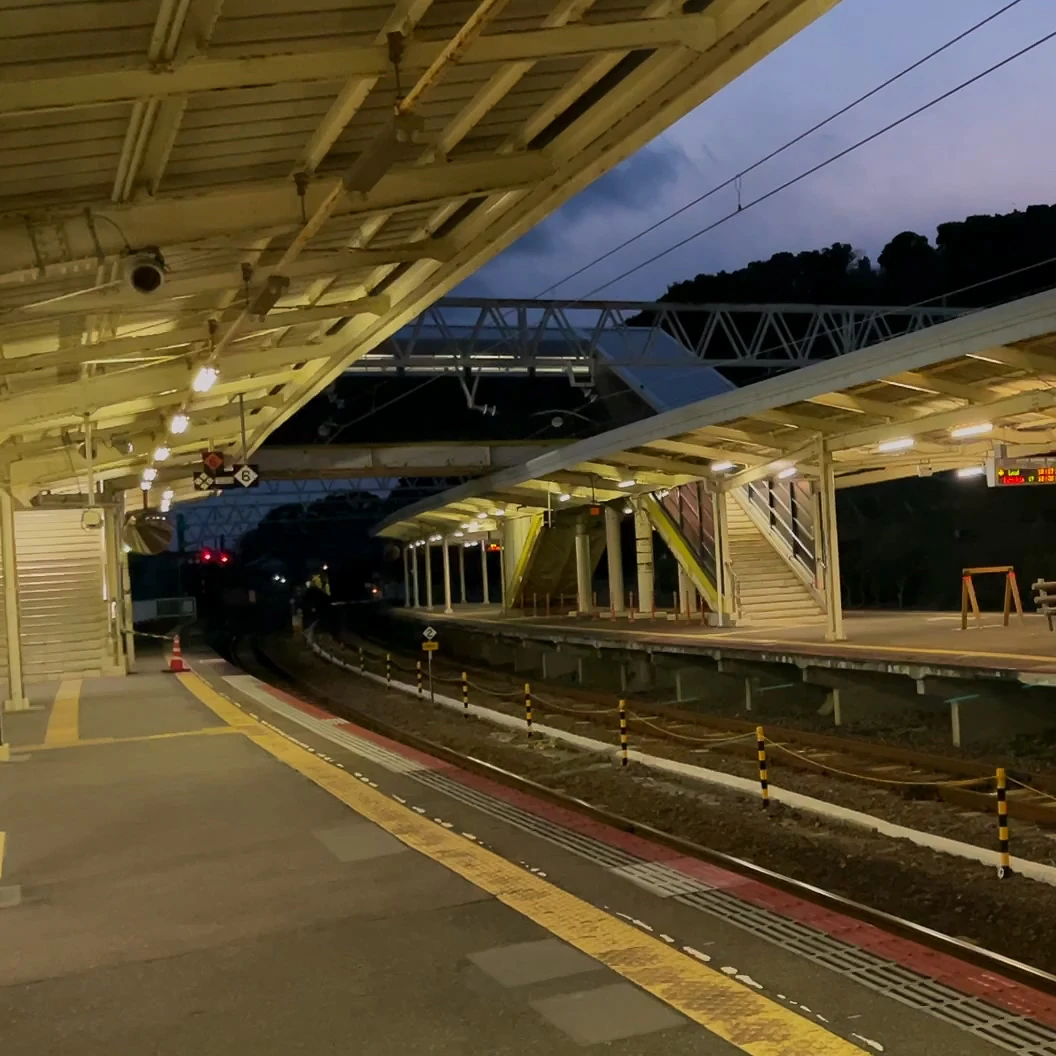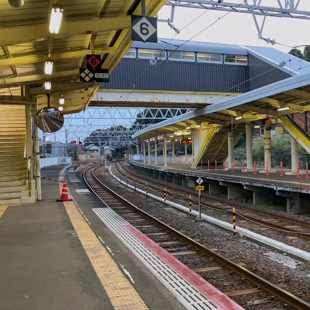 구시모토역 승강장은 이렇게 곡선 형태를 띄고 있어요.