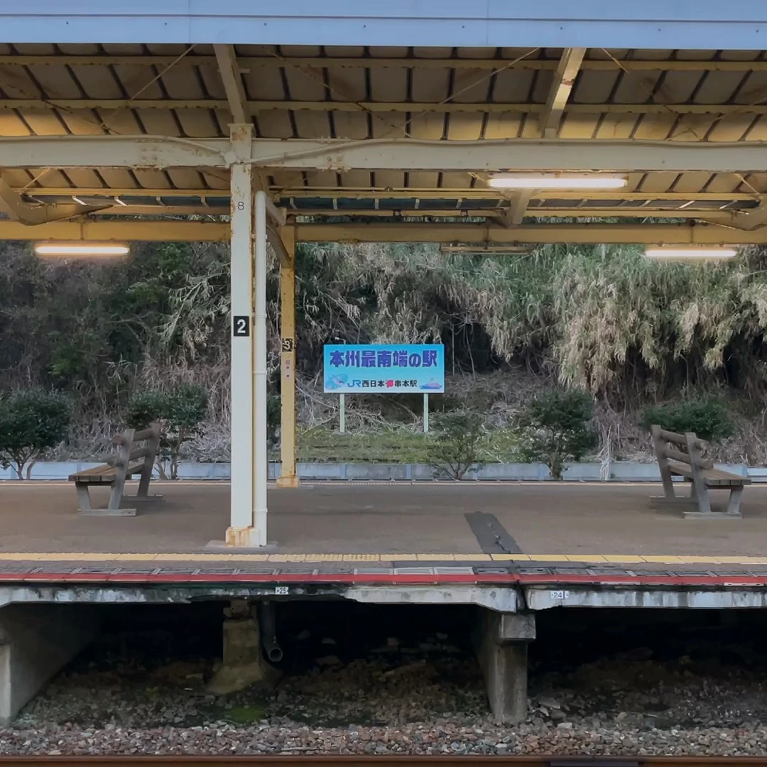 다시 역으로 돌아와서 개찰구를 지나는데, '혼슈 최남단의 역'이라는 글이 보이네요.
