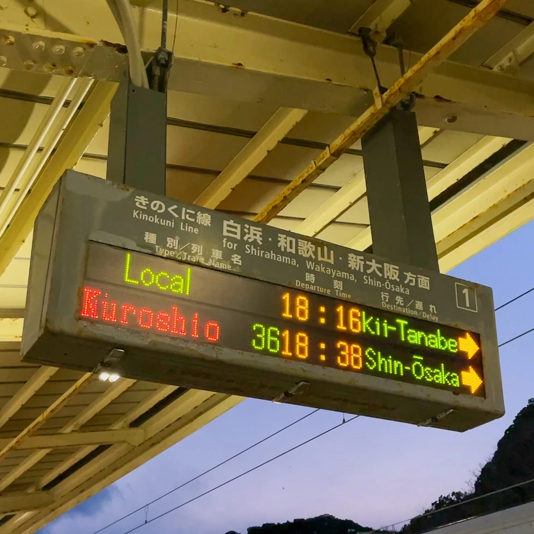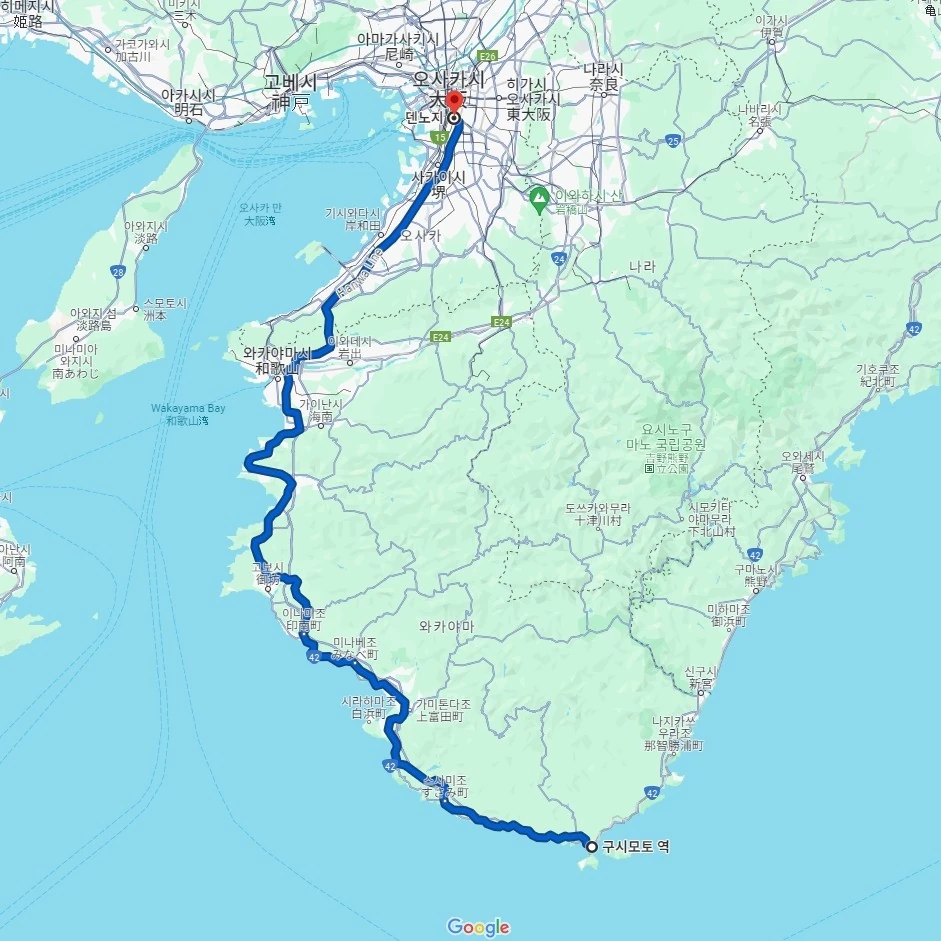 혼슈 최남단인 와카야마현 구시모토를 당일치기로 가서 구경을 마치고 다시 오사카로 돌아가는 여정이에요.