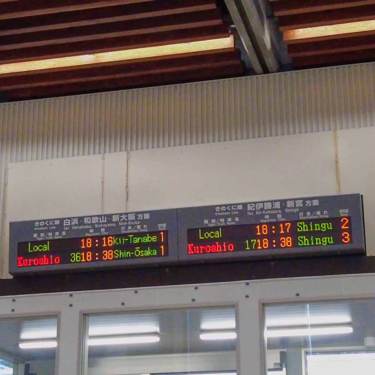 우연히도 신구 방면으로 가는 '특급 쿠로시오 17호'와 제가 탈 신오사카 방면 '특급 쿠로시오 36호' 모두 18시 38분에 올 예정이네요.