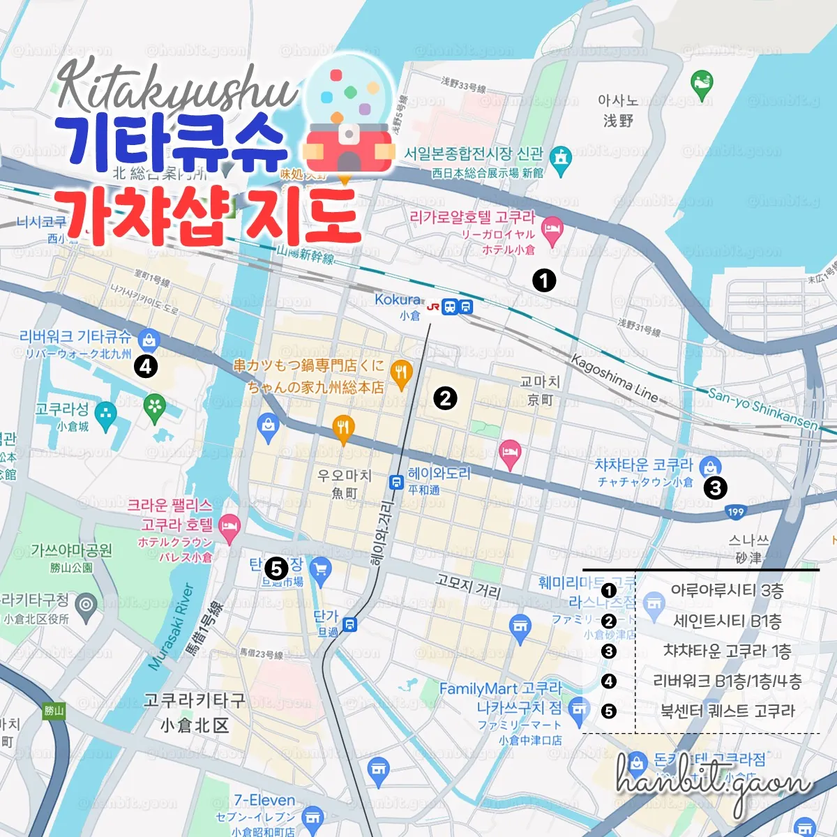 기타큐슈는 마음만 먹는다면 후쿠오카로 넘어가서 쇼핑을 할 수도 있지만, 그래도 가챠 하나 때문에 후쿠오카까지 가기엔 조금 그런 듯 해서(ㅎㅎ) 기타큐슈, 그 중에서도 중심지인 고쿠라역 주변에 위치한 곳을 정리해봤어요!