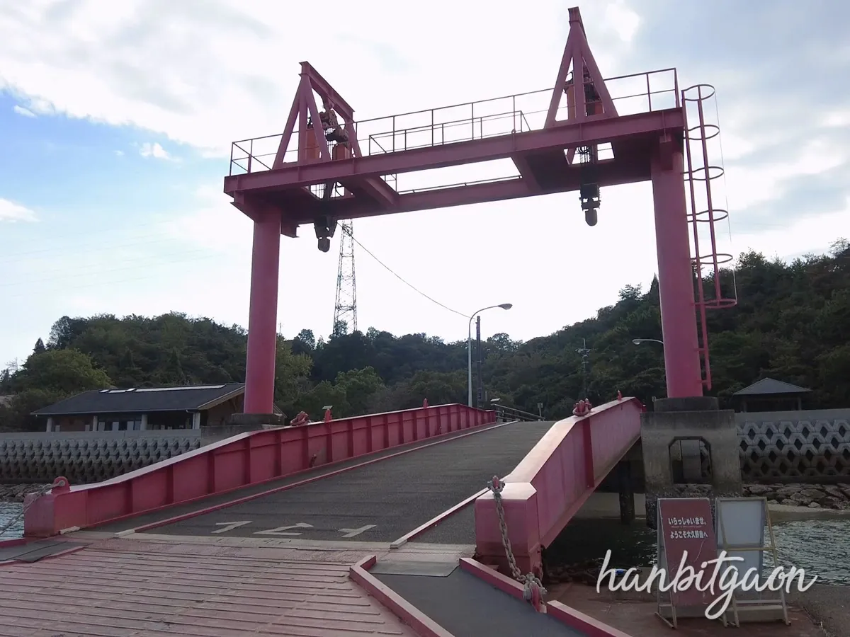 토끼 모양이 그려져 있는 것에서 알 수 있겠지만, 역 근처의 항구에서 배로 10분? 15분 정도만 가면 토끼섬으로 불리는 섬이 있어요.