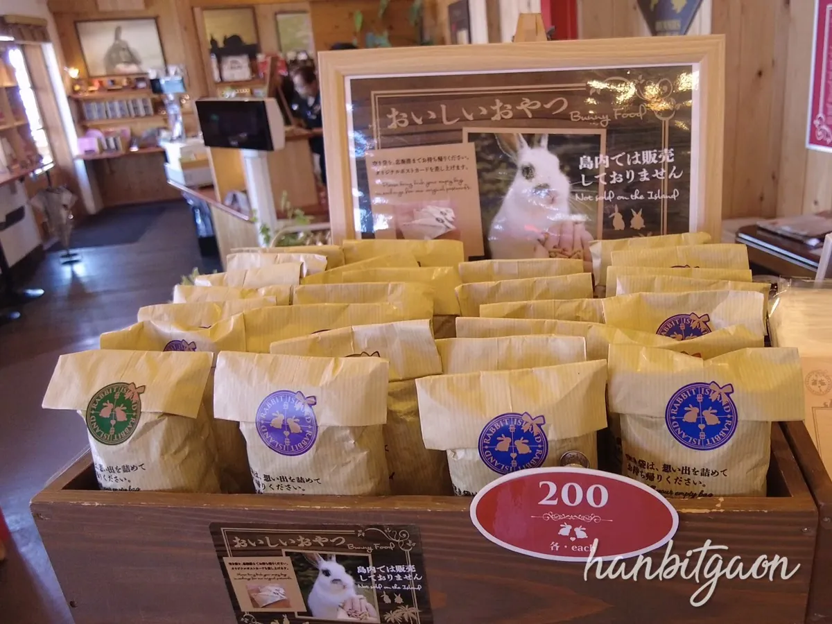 토끼섬 내에선 먹이는 팔지 않는다고 했으니 먹이도 한 봉지! 200엔!