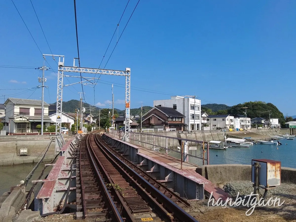 역에서 약 3분? 정도 걸어가면 타다노우미항이에요.
