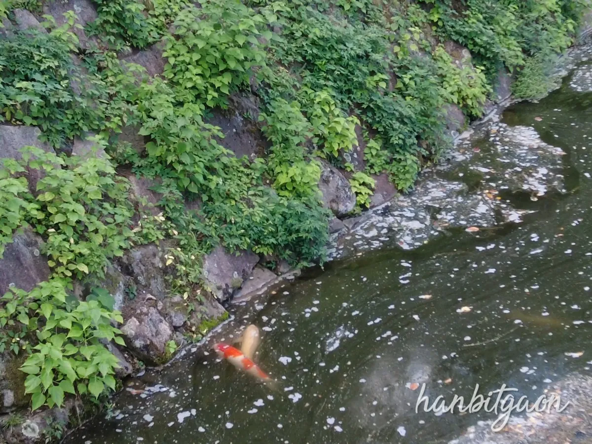 해자에는 잉어들도 살고 있네요.