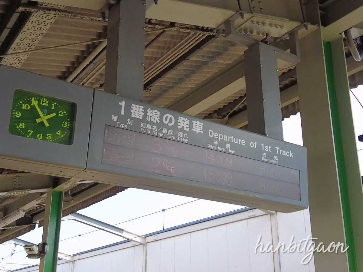 히로행 열차를 타야하는데 거의 40분~1시간 간격으로 있네요.