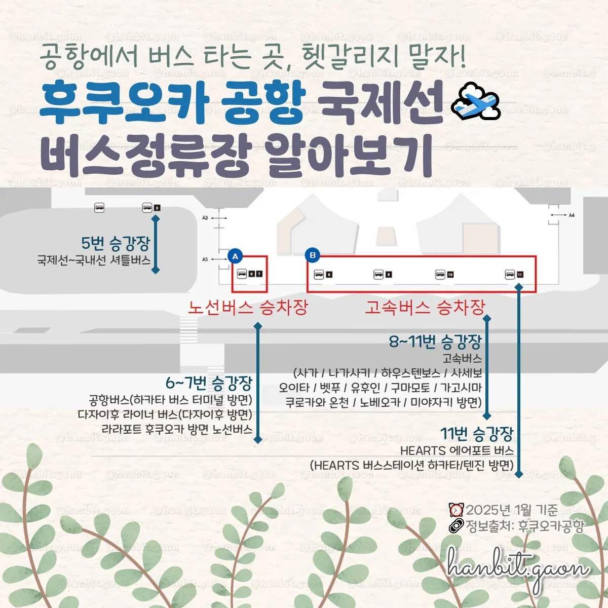 ⚠️ 후쿠오카 공항 국제선 터미널 공사로 인해 기존 4번 승강장에서 타던 버스가 6·7번 승강장에서 타는걸로 바뀌었어요!