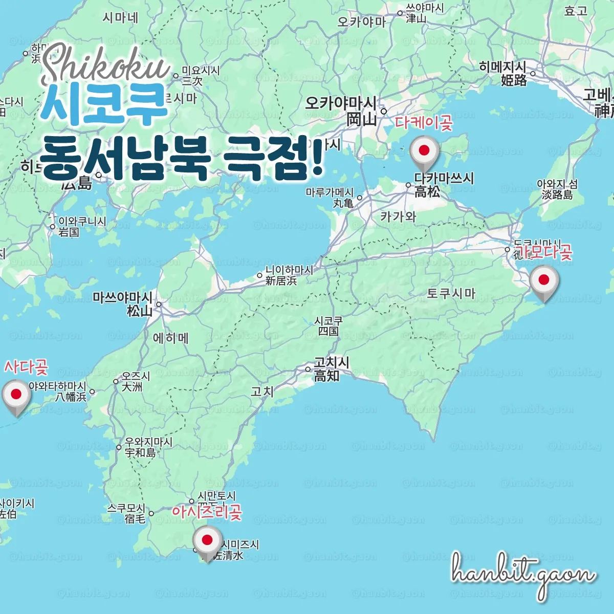 (예전에 홋카이도의 동서남북 극점은 이미 정리해봤어서 시코쿠가 2번째 글이네요 ☺️)
