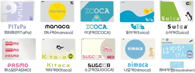 도쿄에선 스이카/파스모, 오사카에서는 이코카, 후쿠오카에선 하야카켄/스고카 등...