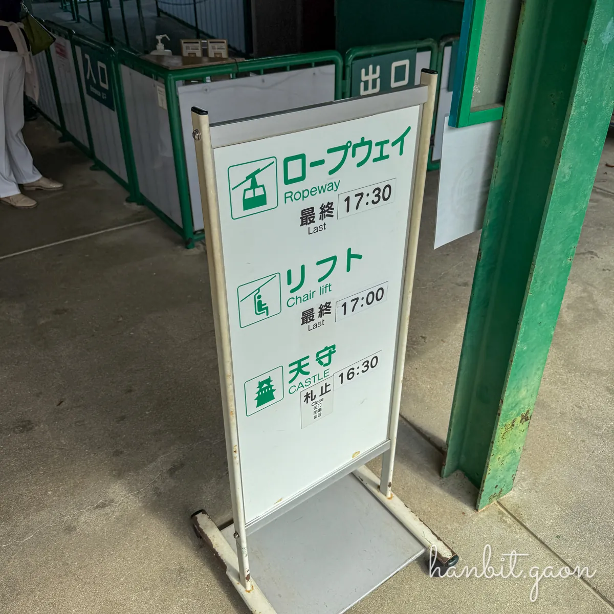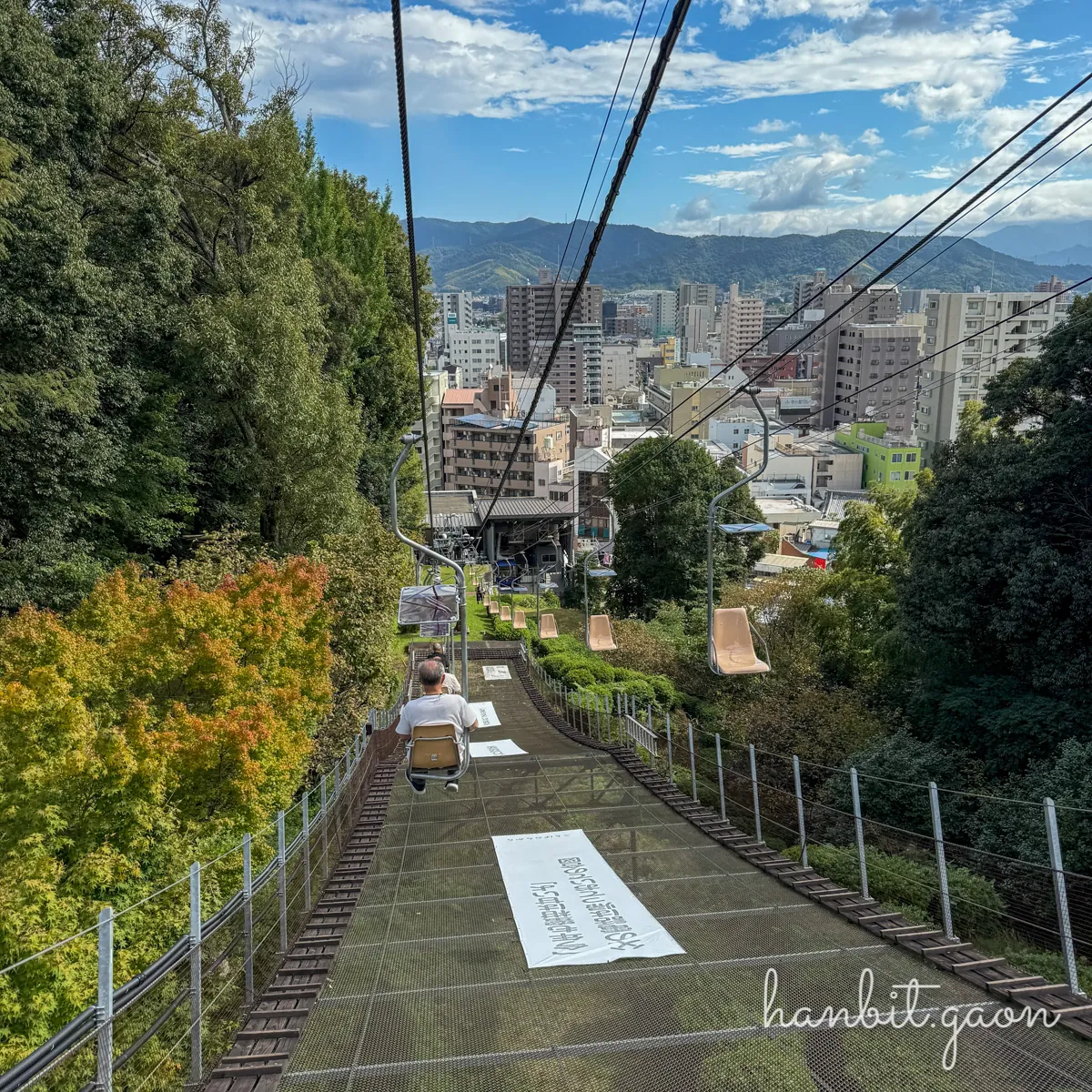 저는 올라갈 때는 니노마루 정원을 구경하고 가느라 산길로 걸어서 올라갔지만, 내려올 때는 리프트를 타보고 싶어서 리프트를 타고 내려왔어요.